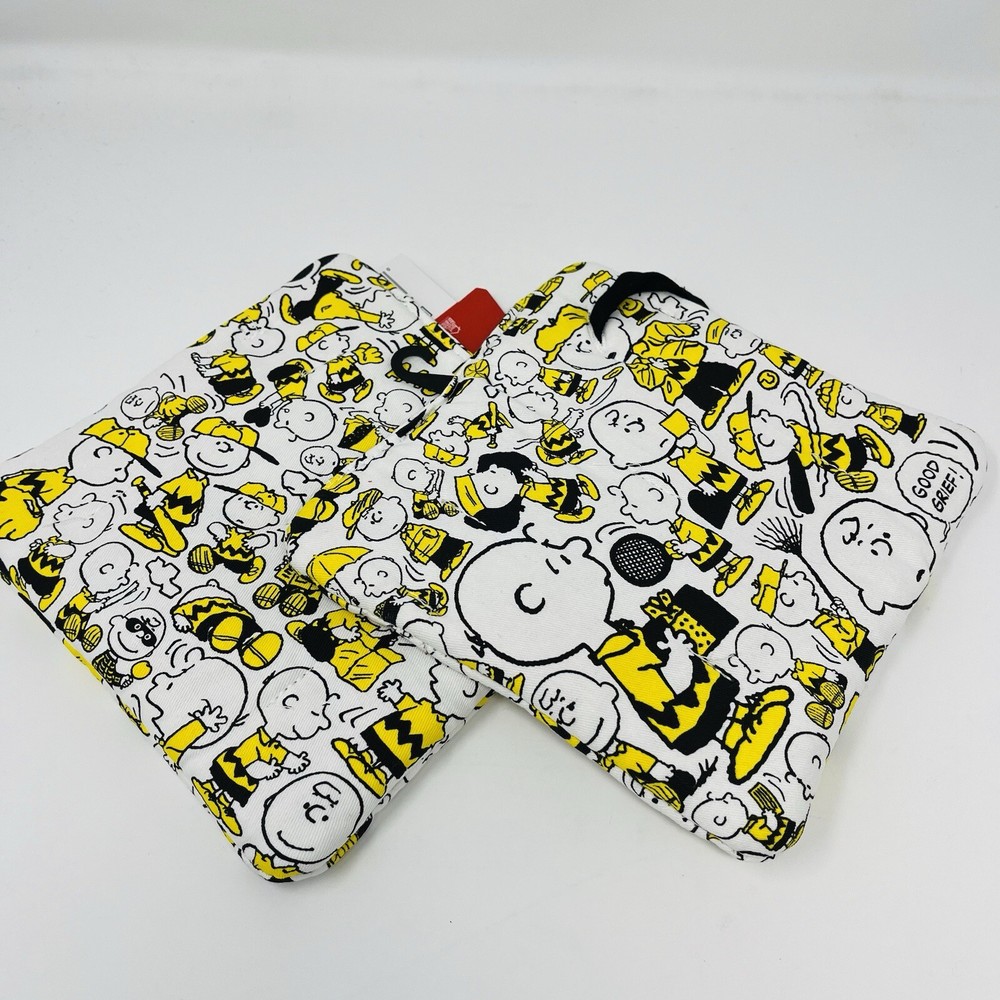 PEANUTS 2 Pack Kitchen Hot Pads Day In The Life Of Charlie Brown Sports Yellow