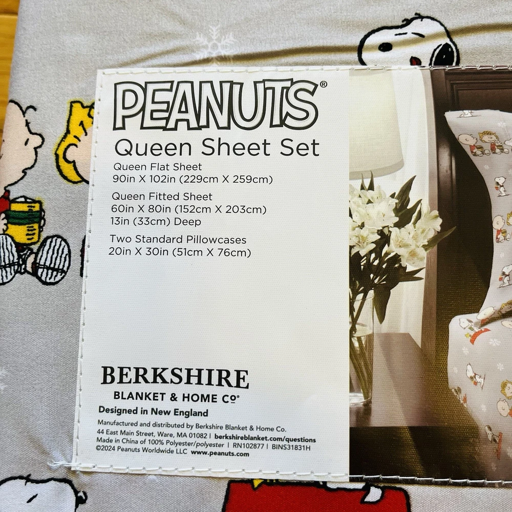 PEANUTS Christmas Queen SHEETS SET Snoopy Woodstock Charlie Brown Hot Chocolate