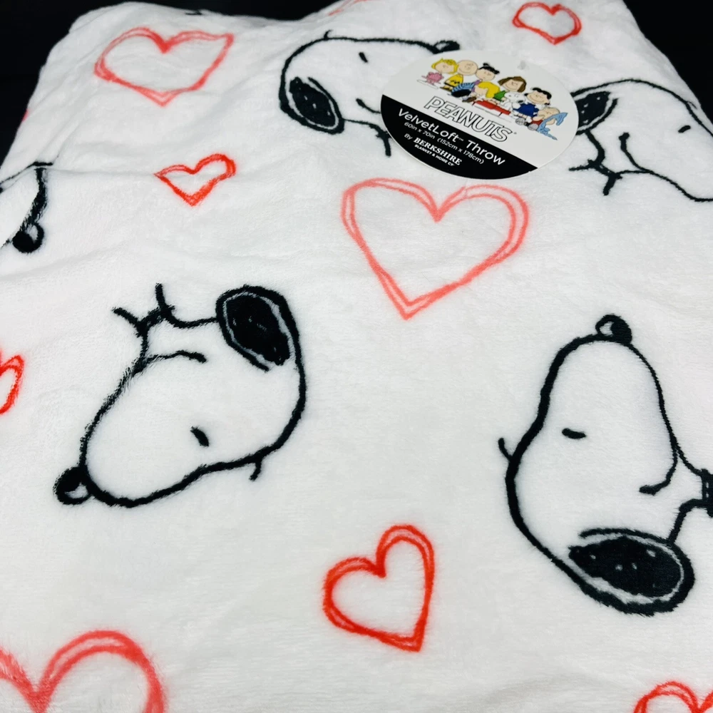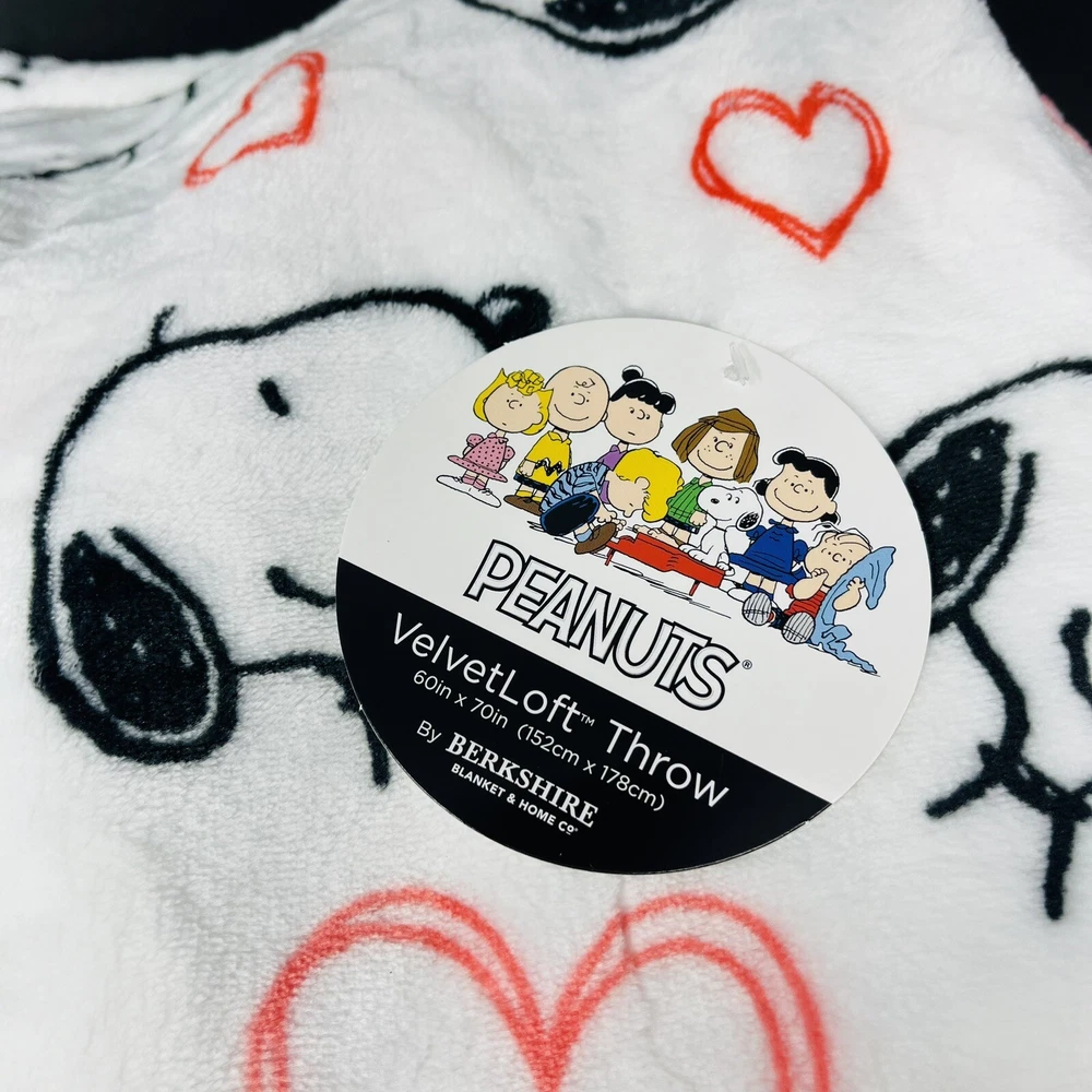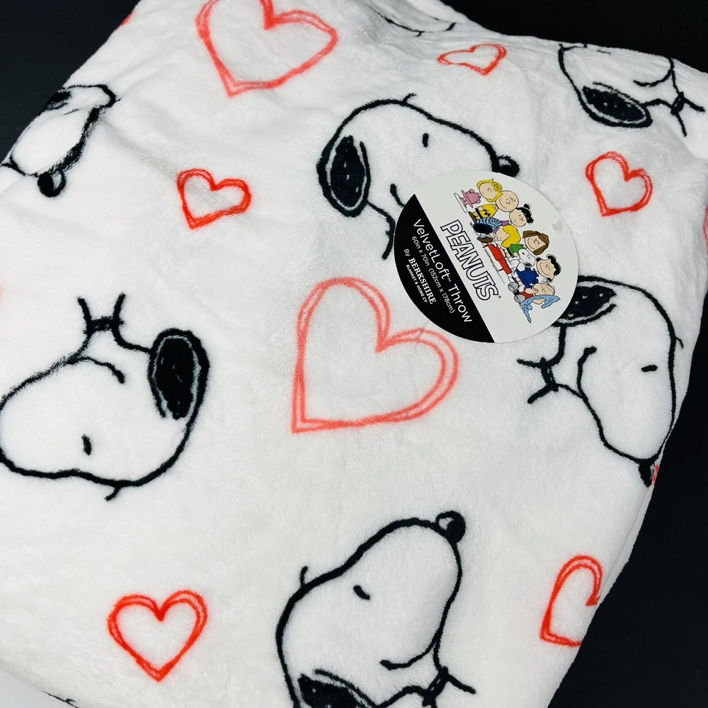 Character Family:PeanutsCharacter:SnoopyColor:WhiteTheme:Snoopy, Charlie Brown, Napping, WoodstockRoom:BedroomPattern:All-OverStyle:CartoonFeatures:Machine WashableSize:60 x 70 inBrand:Peanuts Worldwide LLCType:Throw BlanketMaterial:PolyesterShape:Heart