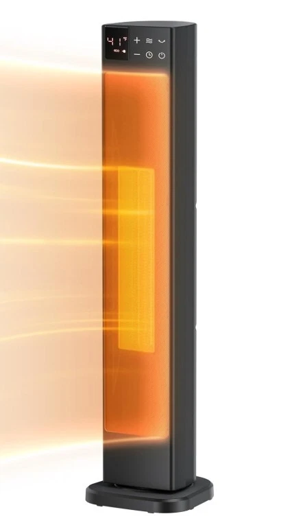 The Pelonis 30" Ceramic Tower Space Heater is designed for heating large rooms. It features an adjustable thermostat for customized comfort and utilizes a forced air/fan heating system powered by electricity. The tower heater is made of ceramic material and is suitable for floor mounting. Perfect for maintaining a warm and cozy environment during colder months, this Pelonis heater provides efficient heating for any room in your home. No remote.
