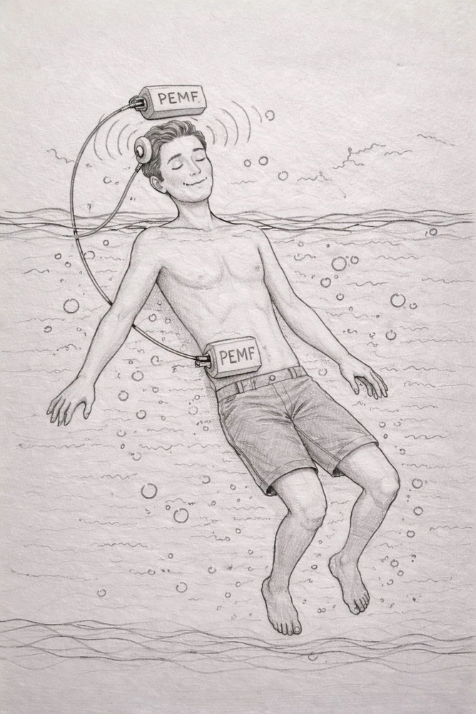 The PEMF Mimi ( Pulse Electro-Magnetic Field)Therapy Device is a portable unit designed for unisex use. With a focus on pain relief, it is effective for headaches, physical stress, arthritis, and aches and pains. The device uses magnets and copper material to provide therapy, targeting specific body areas like the wrist and neck. This black-colored device offers a convenient and natural solution for those seeking relief from various ailments. The device combines: a signal generator, a magnetic coil, external 5 V DC power supply. All components are integrated into one compact box. - Strong magnetic field output : 1 mT ( 10 Gauss) - can operate 24/7 - frequency range: 1 Hz-150 kHz - fine frequency selection. - provide simple guide to operate the PEMF mini - can operate overnight to dramatically improve sleep, reduce stress - provide complete list for PEMF treatment Affordable compared to commercial systems. When using two devices: dual-zone strategy to prevent neural adaptation and increase systematic response; activate anti-aging mechanisms Example For head apply 7.83 Hz (relaxation), for abdomen 50 Hz ( metabolic stimulation) Reference for this PEMF mini and procedure technology U.S. Patent No 10821294