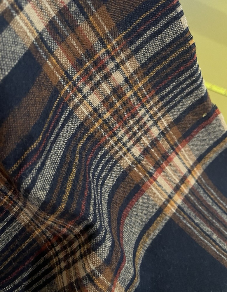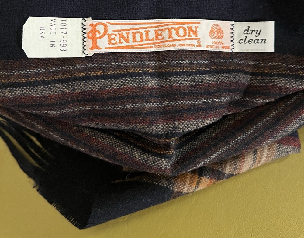 Wrap yourself in the timeless elegance of the Pendleton 100% Pure Virgin Wool Scarf, a classic accessory that brings a touch of the 1970s USA to your ensemble. Featuring a vibrant multicolor blue plaid pattern, this regular-sized scarf is not only a stylish addition to any outfit but also a testament to vintage fashion with its authentic design and fringe accents. Crafted from the highest quality wool in Portland, Oregon, this scarf promises to provide warmth and comfort during the cooler seasons of fall and winter. Measuring 80 inches in length with fringe and 20 inches in width, it offers versatile wearability, whether you're dressing up for an occasion or simply looking to stay cozy. This unisex piece is a multifunctional neck warmer that adds both function and fashion to your wardrobe. Please see photos, about 6 very small moth holes.
