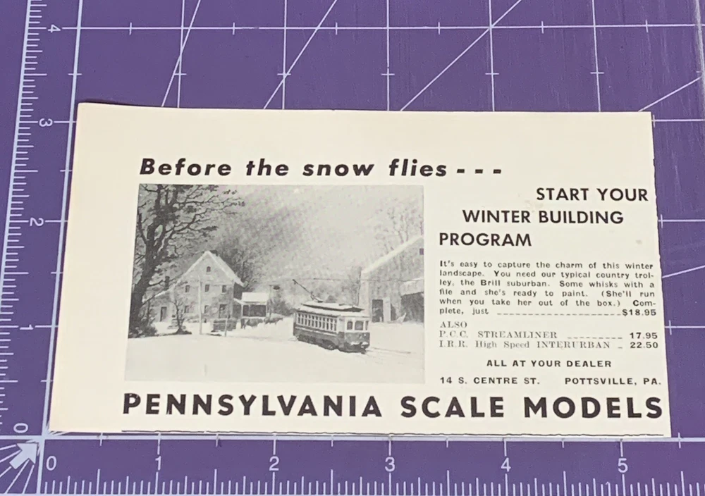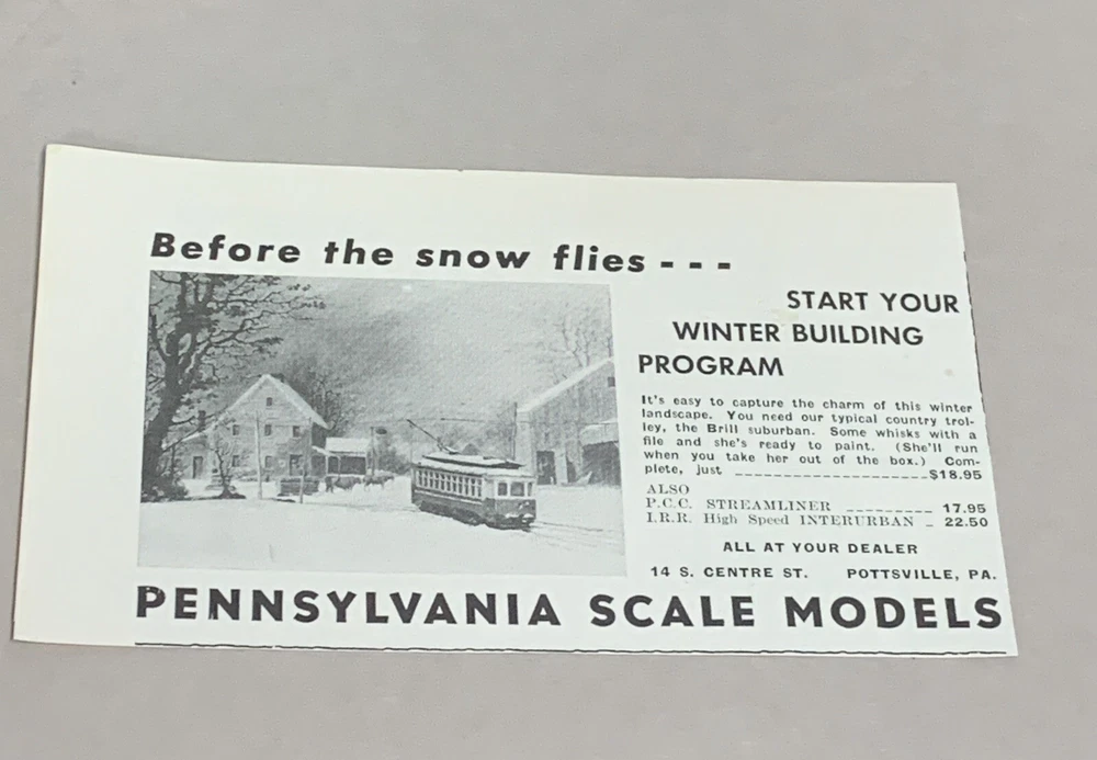 PENNSYLVANIA SCALE MODELS POTTSVILLE PA 1958 MODEL TRAIN PRINT AD This item was found at auction and there may be some staining, discoloration and other signs of age and use. Please see detailed photos for condition. **Photos are the item being sold.** Click Here to Visit my eBay Store