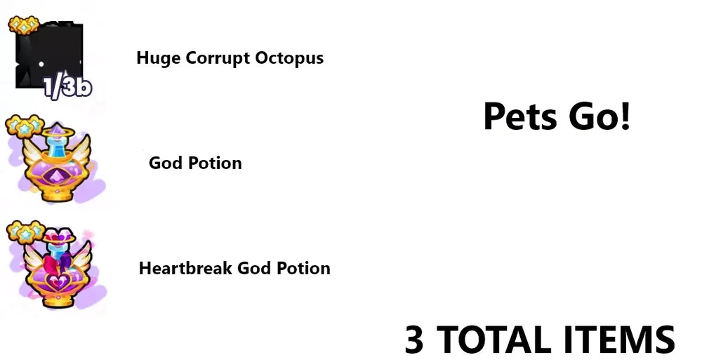 This order contains items such as Shiny Pets, Huge Pets, Potions, and variety of items in Pets Go! __________________________________________________ Important Information: All transactions will be recorded for both the buyer's and seller's protection. This is a virtual item meaning there will be no physical package or items being sent to you. Order delivery time may vary as I'm usually online between: - Weekends: 1:00 PM - 9:00 PM EST - Weekdays: 3:00 PM - 9:00 PM EST If you placed your order outside of these hours, expect the delivery time to be longer than usual. If you placed your order during my active hours and it takes longer than 2-3 hours, you'll receive 500,000 diamonds in return for late delivery! Delivery will be sent via In-game Mailbox. When purchasing, please message me your Roblox Username through eBay messages. By purchasing you agree to these terms: There will be no refunds of any sort! Your order may take between couple minutes or an hour depending on what time you bought this item. However, if it takes longer than 2-3 hours you'll receive 500,000 diamonds as compensation. After purchasing, you must message me your 6 digit pickup code, this code should be in your order confirmation email eBay sends you, if not, please check your "Purchase History" on eBay and find your order, and it should be there. Failing to provide, your order will be cancelled immediately. When purchasing, you must send me your Roblox Username and NOT your Display Name! All orders/purchases will be recorded in case if anything were to happen.