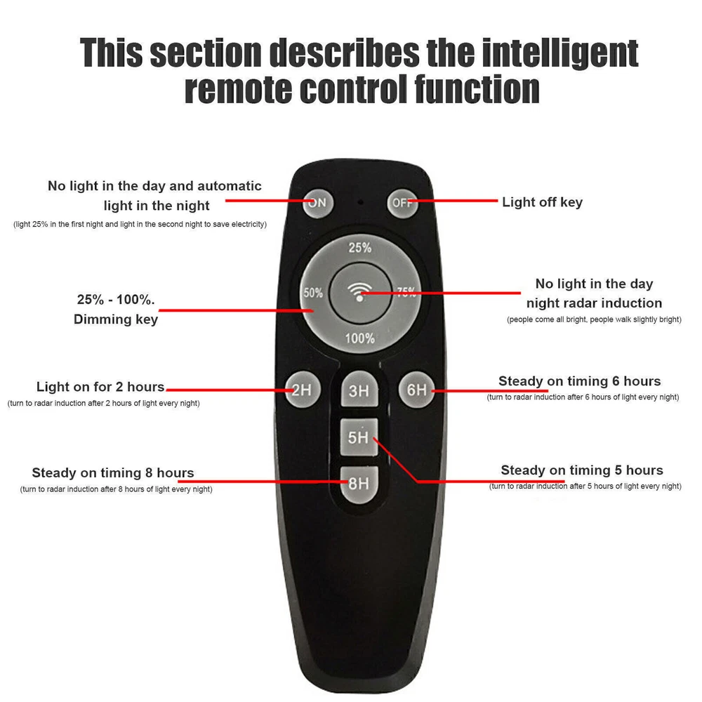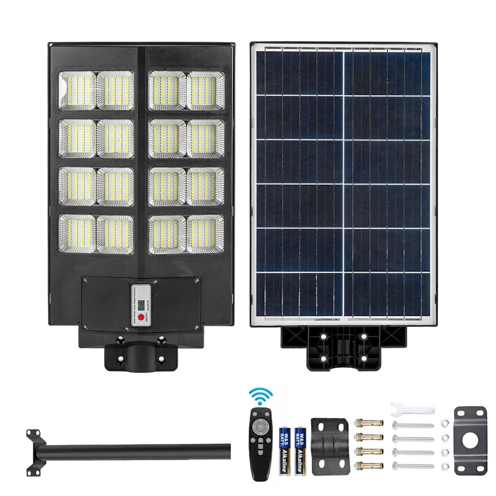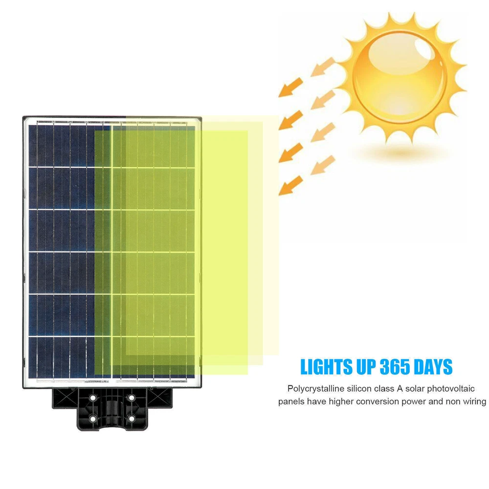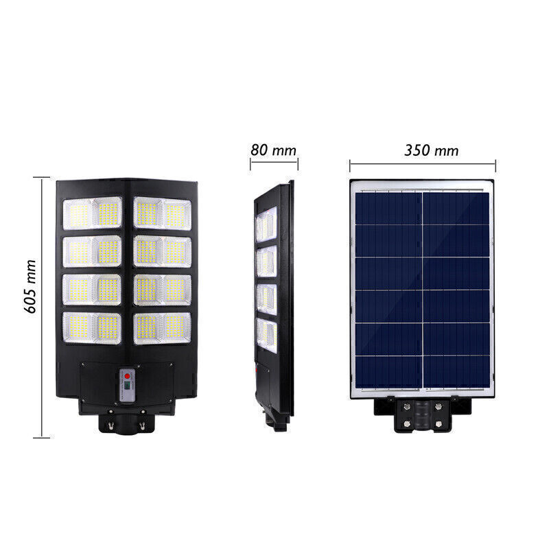 Product Description PFCTART 1600W LED Solar Street Light 9000000LM Dust-Dawn Road Lamp+Timer+Pole 【Fast charging and Dusk to Dawn】 Our commercial solar street light outdoor comes with 6500k cool white light, Built-in Super Bright LED Beads, it is more bright other led beads, it provided the clear and bright vision. The conversion rate of solar panel installation reaches 22.5%. Fully charging 6-8 hours in the daytime, the led street light can continue to work for more than 14 hours . Powered by solar and save electricity bill, automatically turns on at dusk and turns off during the day. Dusk to Dawn. No worry lighting lasts. 【Motion Sensor + Remote Control+Timing mode】 These led road street light are equipped with remote control, it is good for long distance to control, remote distance:12m. You can choose different lighting modes ( Light Sensing Mode, Motion Sensing Mode ) and light brightness for your needs. There are 4 levels of brightness that can be adjusted. Remote control operation can be timed,it Provides 5 Timing sets: 2H/3H/5H/6H/8H. Radar sensor mode, the lights are 100% brightness when motion is detected, and the lights are dim and 30% brightness when no motion, intelligently saving electricity, and increasing the lifetime of street lights. 【220° solar panel design and wide-angle lighting】 We have upgraded the solar panel and it has two-way wide-angle lighting, the lighting angle reaches 220°, and benefits from super bright led beads, allowing it provide a wider range of lighting and brighter light compared with ordinary 180° street lights. Illumination area up to 1600-1900sq.ft, we recommended installation height:6-8M.It can be lighting up street and offer convenience for walking at night. 【IP67 Waterproof and Durable】 The outdoor solar street light adopts high-quality material, which is lightning-proof, rain-proof, oxidation-proof and anti-exposure. IP67 waterproof function makes it work on a rainy day. Its adaptable working temperature is -22℉~140℉. This outdoor Solar Parking lot Lights pole has 15000mAh battery capacity, is more stable and longtime lasting. 【Easy to install and wide application】 This street light solar powered has 2 installation ways, it is easy to install on poles and walls. The installation accessory included in the package, no wiring is required, which can be easily installed outdoor. Perfect for street and roads, parking lot, basketball court, garage, garden, street, courtyard, farmhouse and squares, etc. Specifications Fully charged lighting: 20 hours Solar panel: 6V/25W Battery capacity: 3.2V 20AH Product function: radar + light control + remote control Lamp body size: (H*W*L)60.5*8*35cm/23.8*3.15*13.78inch Lamp beads: 640 Irradiation area: 200 square meters Installation height: 4-6m Material: ABS engineering plastic PC cover Waterproof :IP67 Remote control :Normal light or induction mode Remote control battery type: 2*AAA (included) Life: 100000 (h) About Us Payment Shipping Returns Contact Us Welcome to our store, your support is the biggest driving force for us to move forward. Our main businesses are solar panels, lithium iron phosphate batteries, electric vehicle chargers, solar outdoor/indoor lights, travel solar panels, etc . The product is directly connected with the factory to ensure product quality. Please rest assured to buy, we will provide you with a perfect shopping experience! We accept payment via Paypal only. Payment must be completed within 7 days. If you have any problems about payment, please contact us by ebay message. We only ship to confirmed eBay addresses. Please comfirm that your eBay address is in line with your shipping address. Most of our products are provided with shipping services. Also, the each additional item means exactly the the same color and size. The item shipping from USA. It takes about 5-10 working days to your addresses; Transit time may be a little delayed because of the bad weather. If you do not receive your item within 15 working days since payment finished, please contact us immediately for further assistance. If you have any issue about Item. Please contact us with 7 days since you receive the item and and return to us within 30 days from the delivery date for exchange or refund. If you need return, please contact our customer service representative, let us know the detailed problem and send us some pictures for confirmation. We strive for 100% customer satisfaction! Positive Feedback is very important to us. If you have any questions, please feel free to contact us via "Ask seller a question" . We will reply your email within 24 working hours. About Us Welcome to our store, your support is the biggest driving force for us to move forward. Our main businesses are solar panels, lithium iron phosphate batteries, electric vehicle chargers, solar outdoor/indoor lights, travel solar panels, etc . The product is directly connected with the factory to ensure product quality. Please rest assured to buy, we will provide you with a perfect shopping experience! Payment We accept payment via Paypal only. Payment must be completed within 7 days. If you have any problems about payment, please contact us by ebay message. Shipping We only ship to confirmed eBay addresses. Please comfirm that your eBay address is in line with your shipping address. Most of our products are provided with shipping services. Also, the each additional item means exactly the the same color and size. The item shipping from USA. It takes about 5-10 working days to your addresses; Transit time may be a little delayed because of the bad weather. If you do not receive your item within 15 working days since payment finished, please contact us immediately for further assistance. Returns If you have any issue about Item. Please contact us with 7 days since you receive the item and and return to us within 30 days from the delivery date for exchange or refund. If you need return, please contact our customer service represen