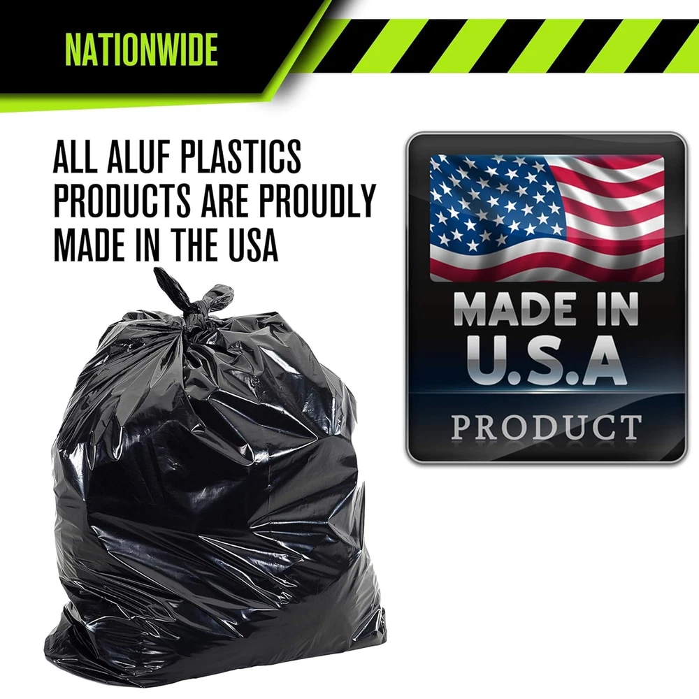 Menu Other Items Feedbacks About Us Contact Us Add To Favorites PG6-9560 Heavy Duty 95 - 96 Gallon Trash Can Liners - (Huge 50 Pack) - 2.0 MIL Thick Garbage Bags for Toter, Contractors, Lawn, Leaf, Yard Waste, Commerical Kitchen, Industrial, Construction, Garage Frustration Free - Our RL 95-96 Gal Black Trash bags are huge, rugged and mean. 2 Mil thick gauge means your project will stay puncture, tear, and frustration free even under heavy weight. Save Money - Our 95 Gallon Drum and Totter liner bags are tough on debris; not on your wallet. At just 90 cents per bag, we provide the same value the big brands do at half the price. Proudly Made in the USA - All Aluf Plastics products are carefully and proudly made in the United States of America. Save the Environment - Our large commercial plastic garbage bags are made from at least 80% percent recycled material. Feel good knowing you are reducing landfill waste without sacrificing on quality. Never Waste a Bag - Bags are packed neatly and disperse one at a time so no bag ever goes wasted. Aluf Plastics - PG6-9560 Heavy Duty 95 - 96 Gallon Trash Can Liners - (Huge 50 Pack) - 2.0 MIL Thick Garbage Bags,Black. Item Specification Item model number PG6-9560 Unit Count 50.0 Count Capacity 96 Gallons Number of Items 50 Color Black Item Form Bag Material Polyethylene, Low Density Polyethylene, Plastic Country of Origin USA Material Feature Heavy Duty Recommended Uses For Product Construction Waste, Toilet Waste, Yard Waste, Food Waste, Recyclable Waste Scent Unscented Dimensions Shipping Returns Additional Info Product Dimensions: . Weight: 28.4 lb Fast shipping is very important for us. Our standard shipping service is FREE. Your order will be shipped within 1-3 business days upon full payment received. Most items are delivered within 3-5 business days, however, please allow 3-10 business days. We are shipping only to USA. We only ship to the confirmed Paypal address. We reserve the right to cancel any order for any reason at any time. We are not responsible for undeliverable addresses. We offer a 30 day return policy from checkout winning date. Your satisfaction is guaranteed! If for any reason you are unhappy with your item, just return it within 30 days for a full refund, minus shipping cost. Please contact us prior to initiating a return so that we can issue you a refund authorization. Items defective upon receipt must be packaged in their retail packaging as if new and returned with a detailed description of the problem. Return shipping fees are not refundable. We reserve the right to decline any returns if the above guidelines are not followed. All of our items, unless otherwise stated, will only run on 120 volts. Please check to make sure your country complies with these specifications. If you have a problem or question regarding your transaction please contact us before leaving any type of feedback. We will work with you to resolve any problem you may have.