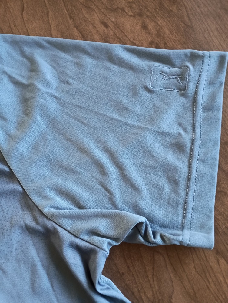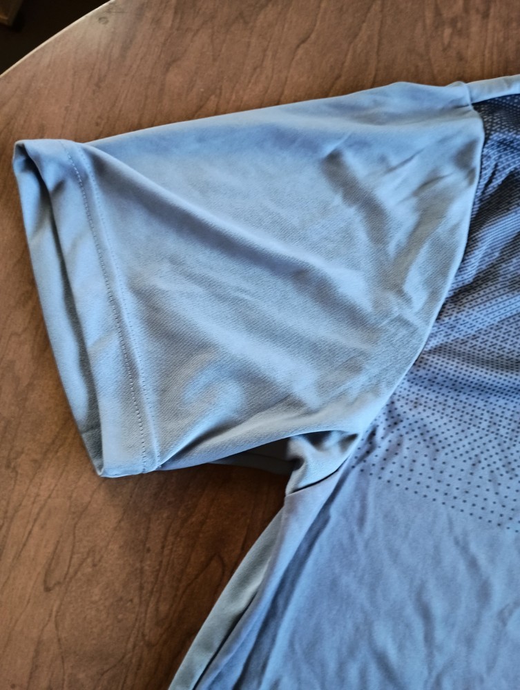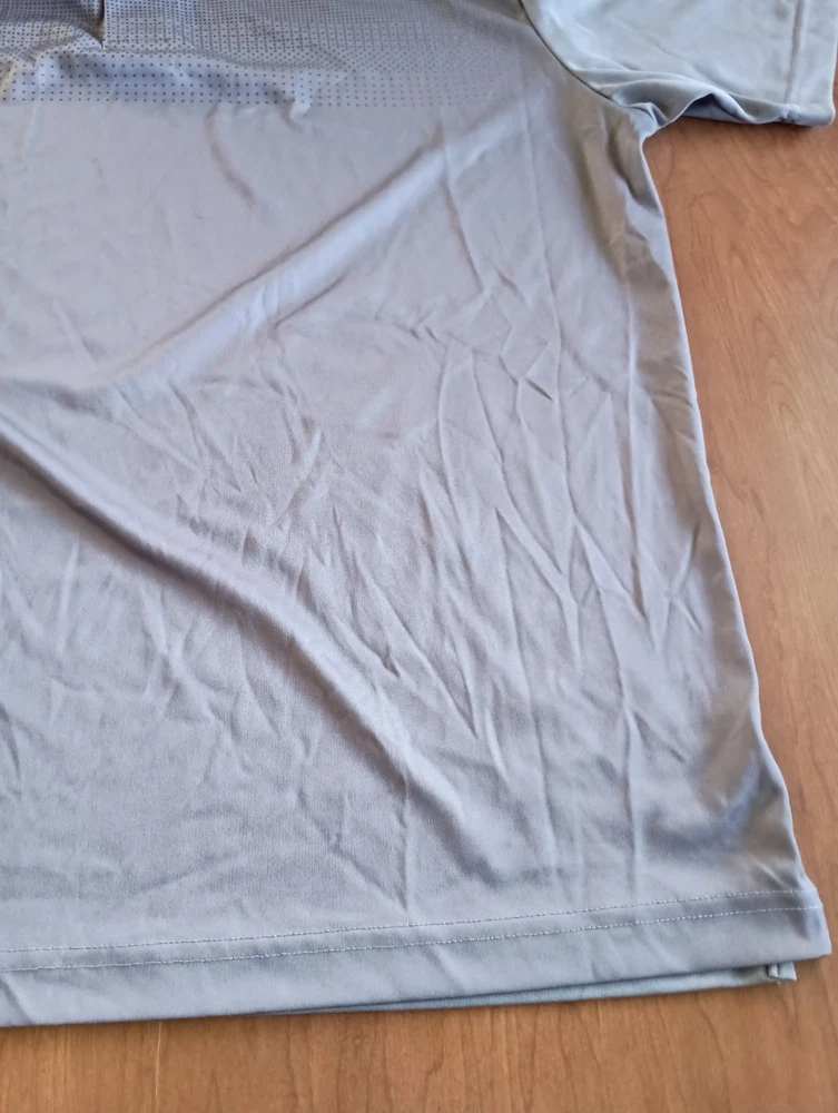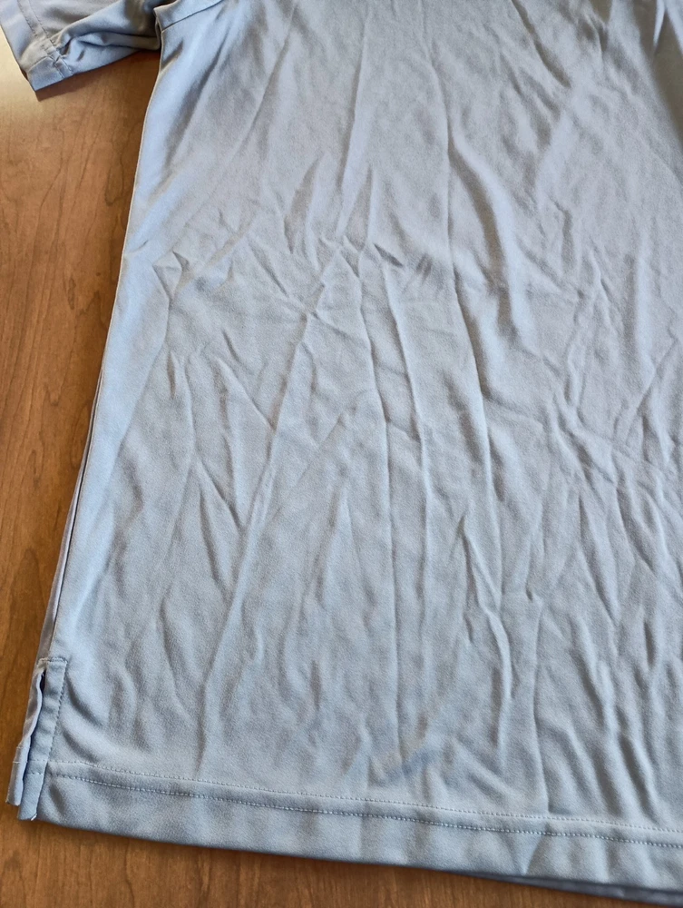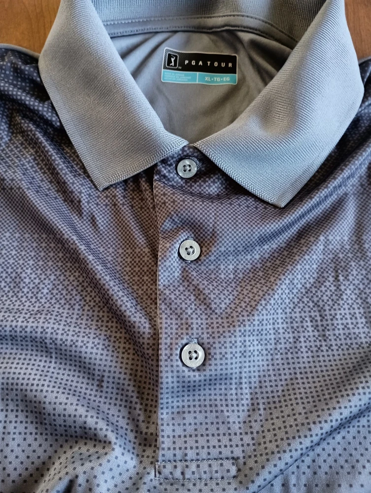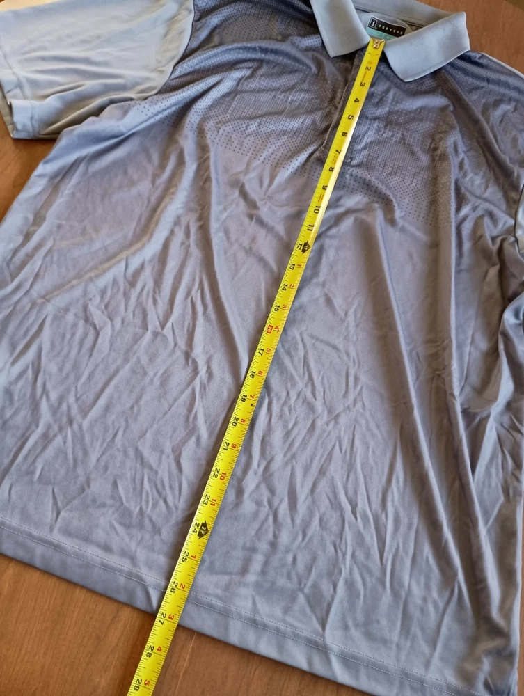 Condition is used/pre-owned - small discoloration on one sleeve and small threading issue on the other, see photos, penny for size Color is gray with black, black area slowly fades into the gray. This is a Collared 3 button polo Size says XL - see photos for approximate measurements This is currently being stored in a smoke/pet friendly home (will be put back in packaging until sold) Please see all photos before purchasing Check out my other listings as well