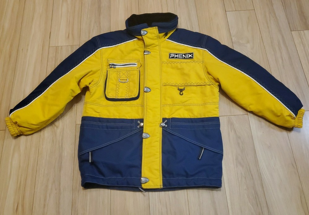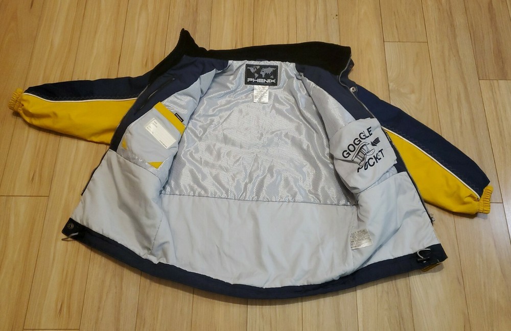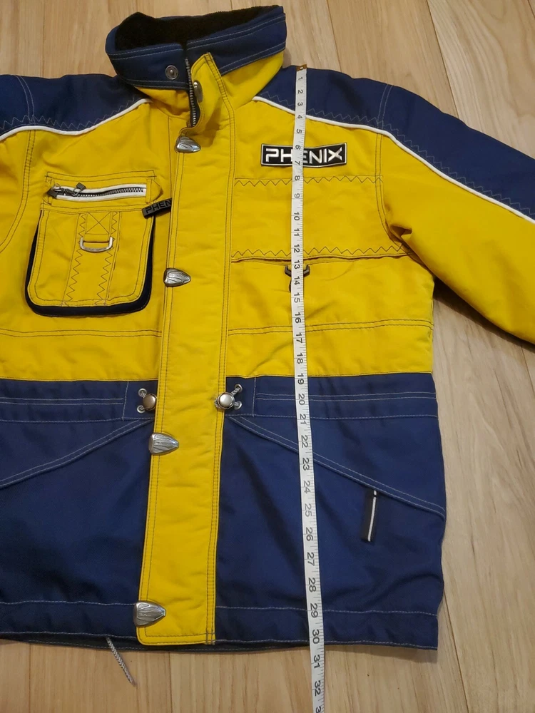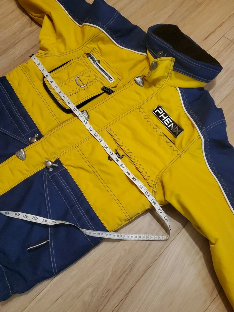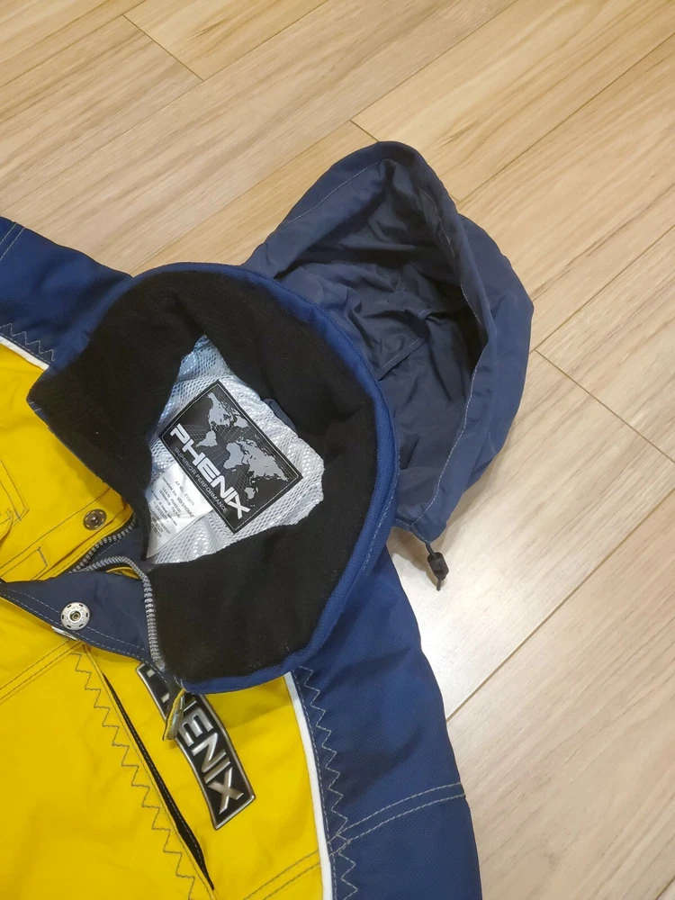 PHENIX Ski Jacket Mens Sz Medium Navy Blue / Yellow Hide Hood Goggle Pocket. In Excellent Condition No Holes Rips or Stains Comes from Smoke Free Home U.S Size Medium Already Prepared In Medium Priority Mail Flat Rate Box for Quicker Shipping With Tracking Thank You