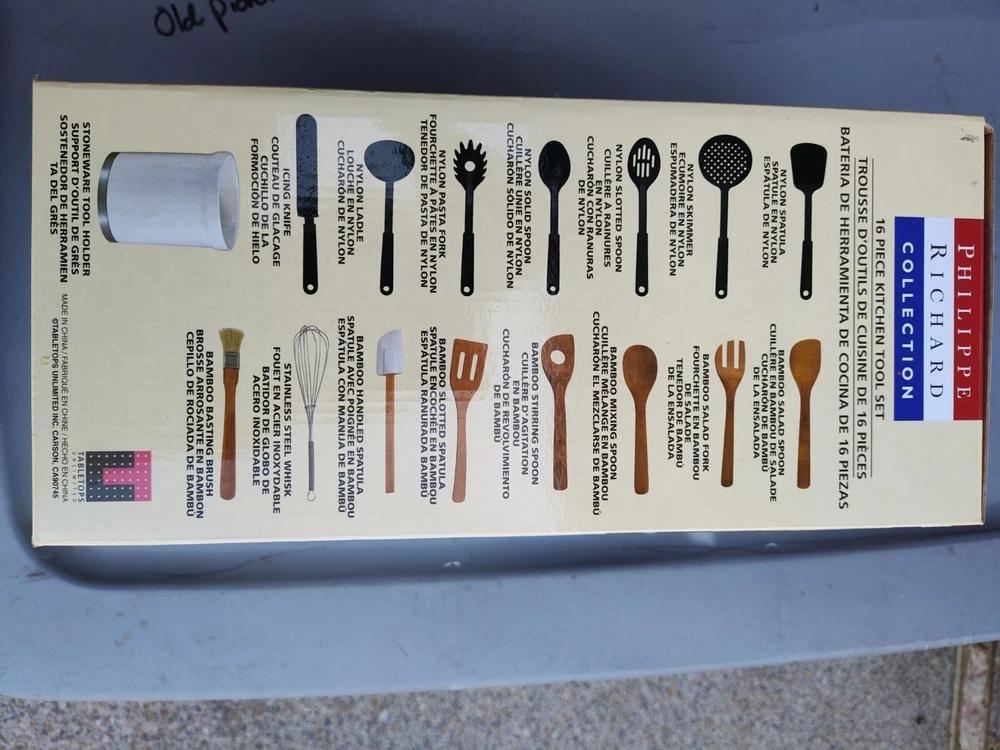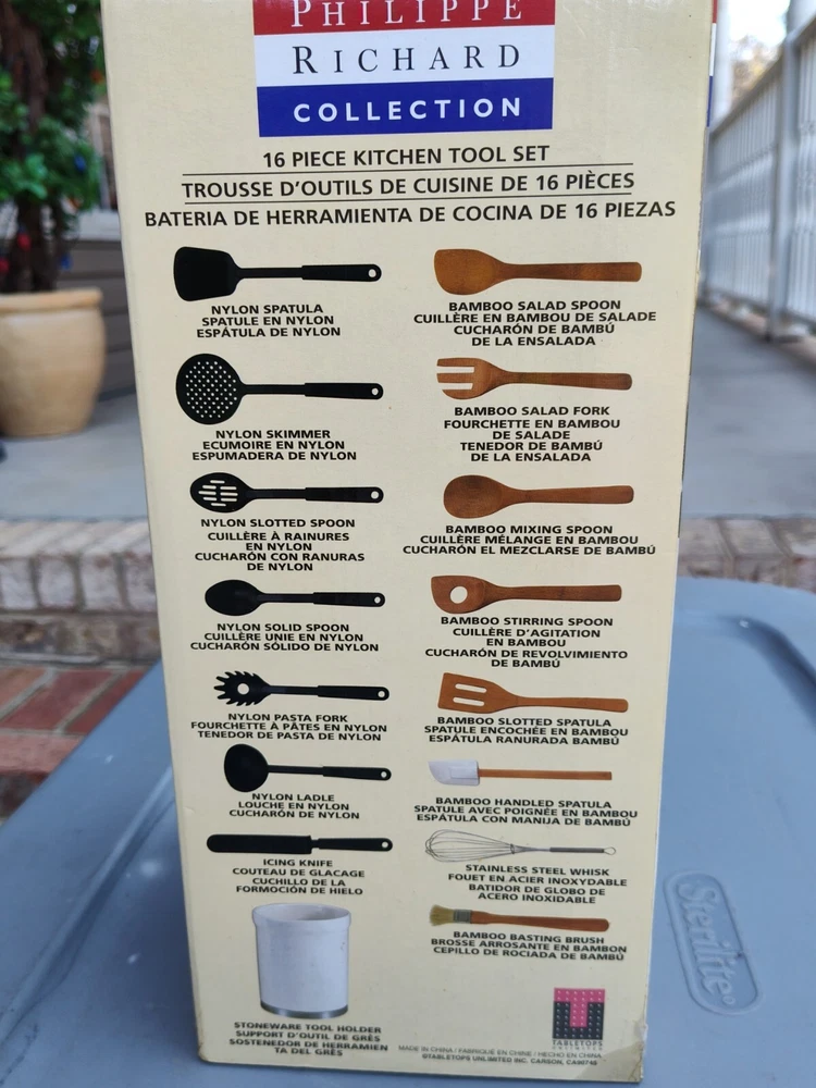 UPC: Does Not Apply gtin13: Does Not Apply Material: Bamboo Set Includes: Spatula, Cooking Spoon, Basting Brush, Ladle, Whisk, Splatter Screen, Slotted Spoons & Skimmers, Skimmer Brand: Philippe Richard collection Number of Items in Set: 16 Theme: Design