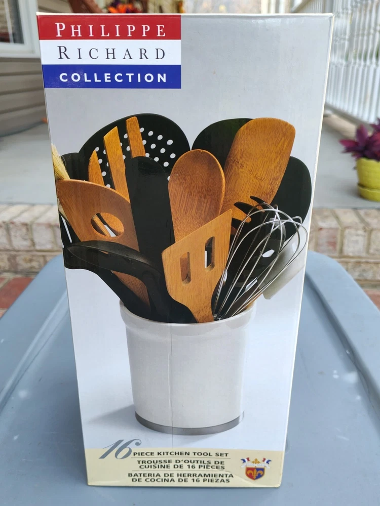 PHILIPPE RICHARD 16-Piece Kitchen Tool Set, Rubber+ Bamboo, NIB