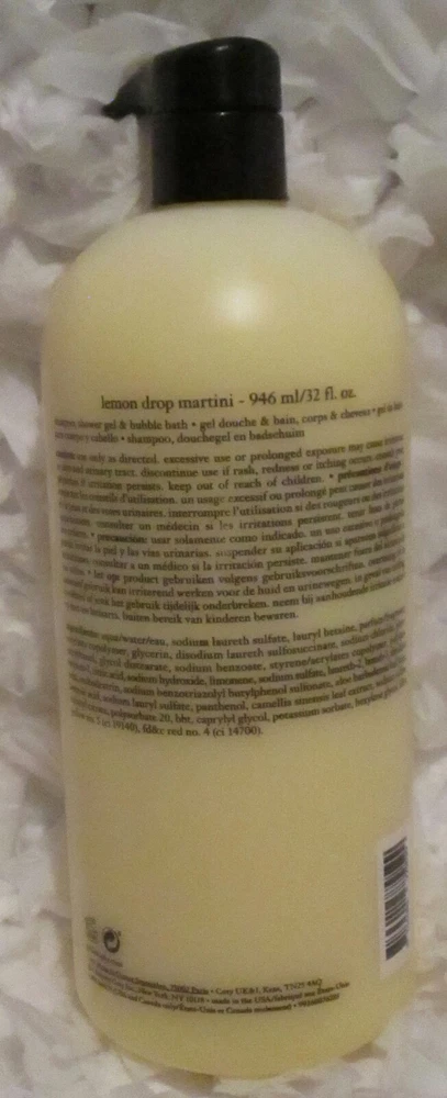NEW LEMON DROP MARTINI *SHAMPOO, SHOWER GEL,& BUBBLE BATH* ~ECZEMA PRONE SKIN~ 3-IN-1 BOTTLE CONTAINS: 946 ml/32 fl. oz COMPLETE WITH PUMP FOR EASY DISPENSING SMELLS YUMMY ~FREE SHIPPING IN THE USA ONLY~ THANK YOU FOR VIEWING THIS LISTING HAVE YOURSELF A GREAT DAY