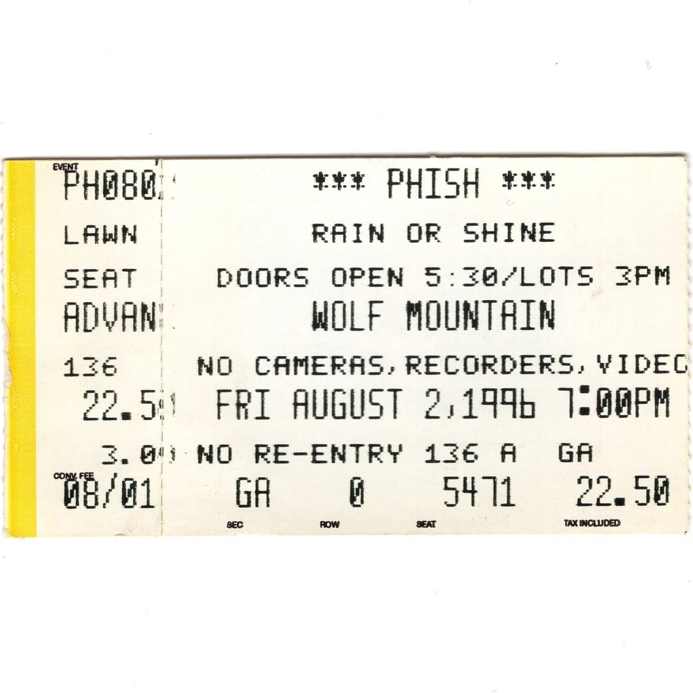 PHISH Concert Ticket Stub PARK CITY UT 8/2/96 WOLF MOUNTAIN THE SUMMER TOUR Rare