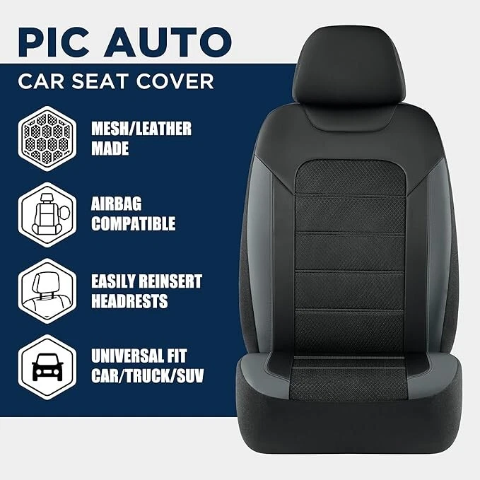 202-USC-PA-721-24 Upgrade your car's interior with these premium leather and air mesh seat covers from PIC AUTO. Designed to fit full set and bucket seats with headrest, these covers are perfect for any automotive enthusiast. The black and gray color combination adds a touch of elegance to your vehicle's interior. With features like airbag friendliness and a one-year manufacturer warranty, these seat covers are a must-have for any car owner. Made from high-quality mesh material, they are durable and easy to clean. Includes Headrest covers. PIC P AUTO Car Seat Covers, Premium Leather and Air Mesh Automotive Sports Seat Covers, Two Front Set, Airbag Compatible Universal Fits Most Cars, SUVs, Trucks and Vans (Black & Gray) MSRP $39.99 NOW YOU SET THE PRICE!!!!!!!! We have set the Manufacturer's Suggested Retail Price as our standard price. This makes a nice donation without costing you anything above the standard price of this unit. In other words, the money that would usually go to a store is now going to the animals. But if you think that is too much, we still appreciate you. WE want you to be happy too. So you set the price. Make a reasonable offer that you feel comfortable with and if we can do it, we will. And you will be our hero.