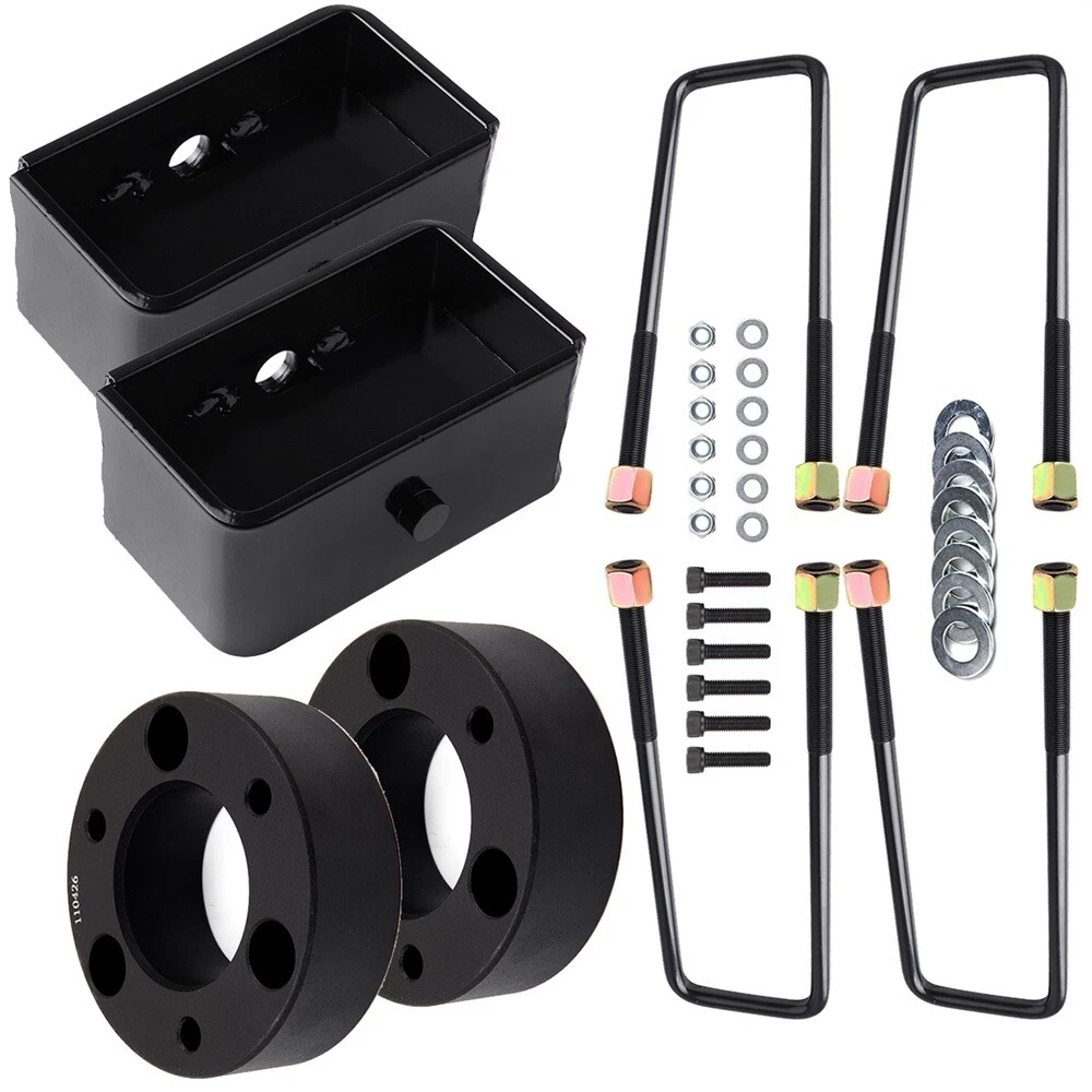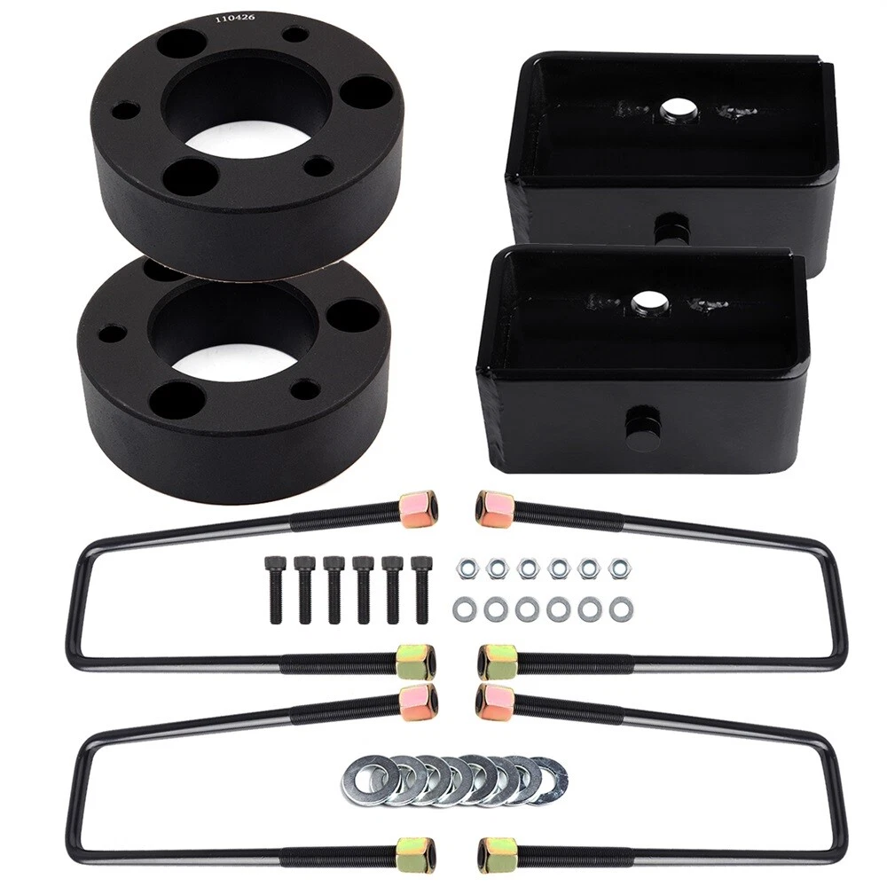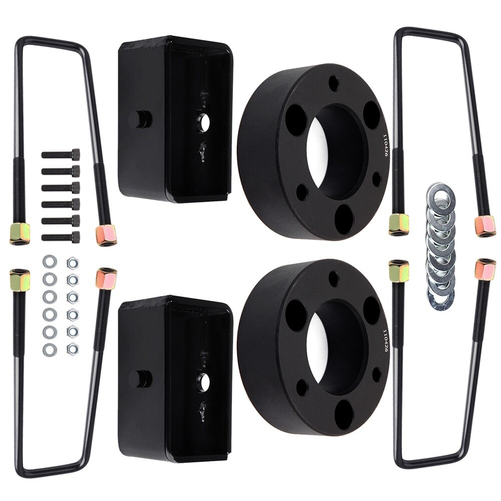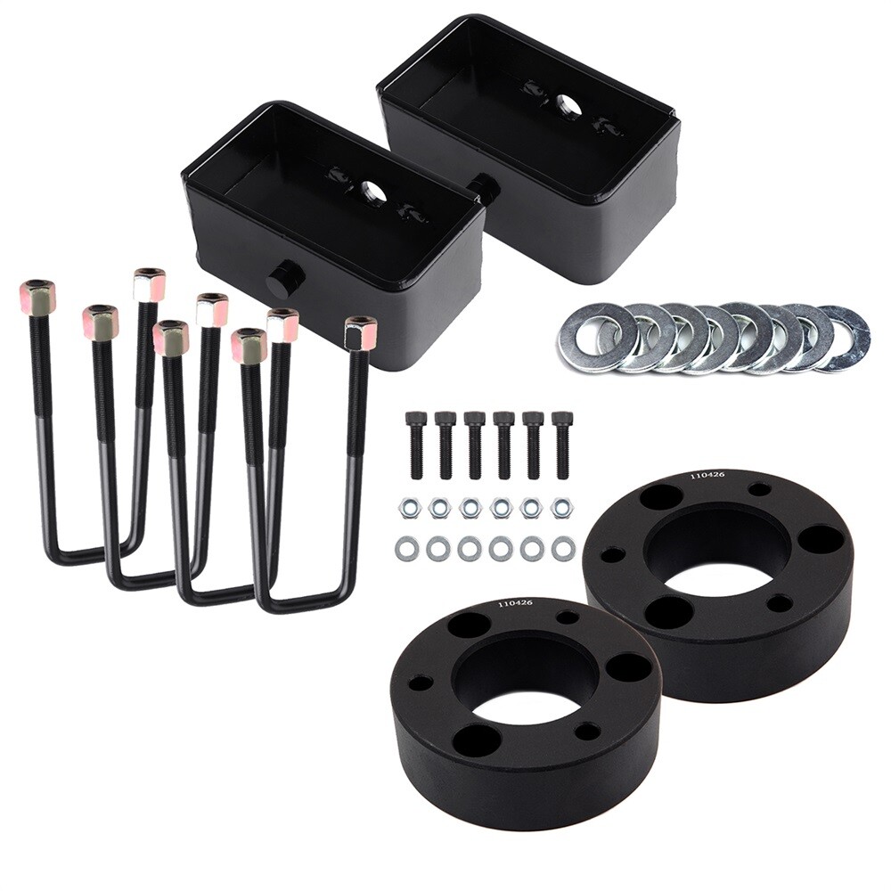 Brand: PICKOOR Thickness of Front: appr. 46mm/ 1.81" Adjustable: No Manufacturer Warranty: 1 Year Lift Height: 3" Front 3" Rear Part Type: Suspension Lift Kit Placement on Vehicle: Front, Rear, Right, Left gtin13: Does not apply U-Bolt Length: 285mm (appr.11.22") Material Blocks: High-Strength Steel UPC: Does not apply Included Hardware: Mounting Hardware Spacers Specs: 3" Lift Height / 1.81 Inch (46mm) Thickness Lift Rear: 3 inch Surface Finish: Texture black powder coat Kit Parts Included: leveling lift kits Lift Front: 3 inch (Not Sapcer Thickness) Manufacturer Part Number: 11446843