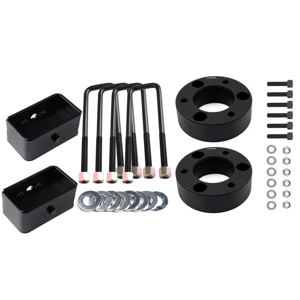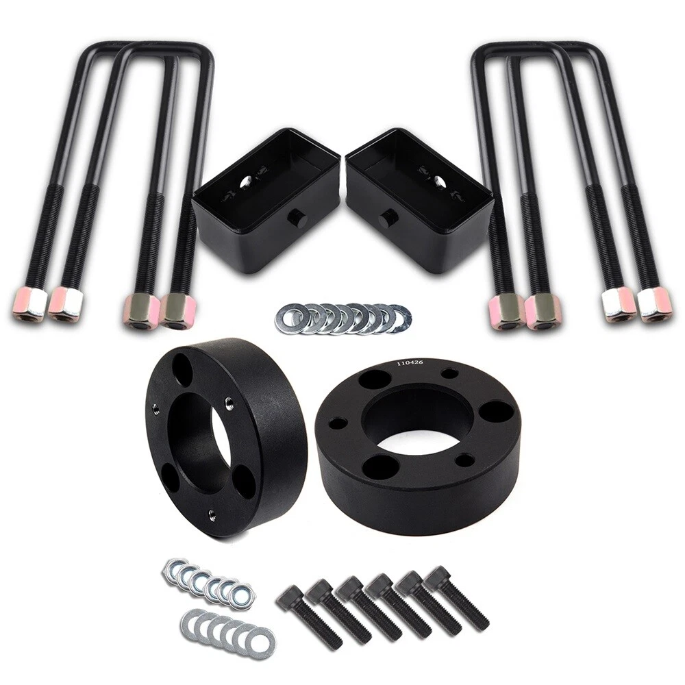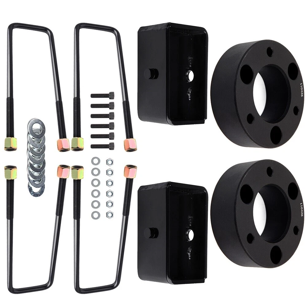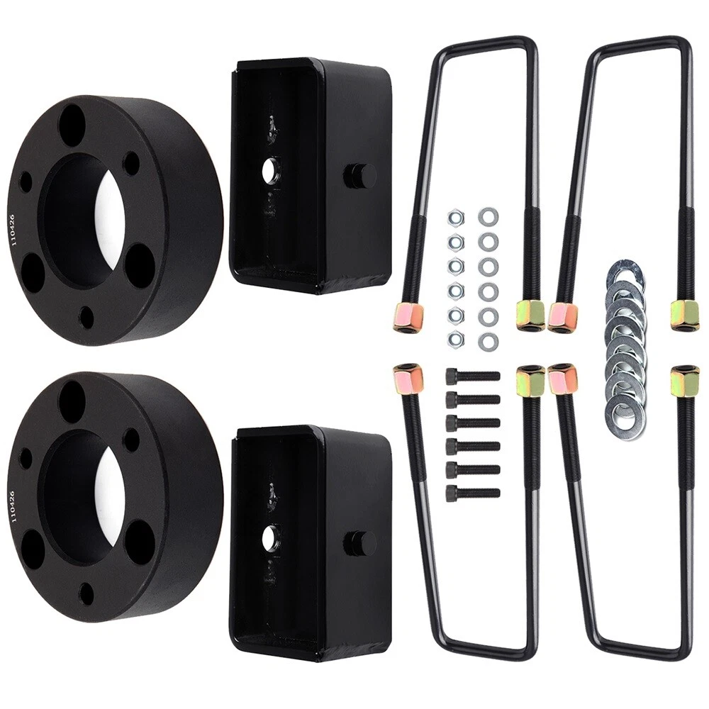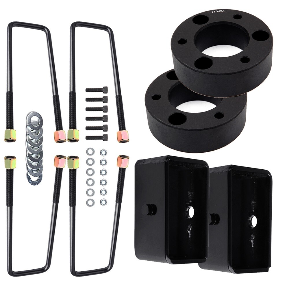 Brand: PICKOOR Thickness of Front: appr. 46mm/ 1.81" Adjustable: No Manufacturer Warranty: 1 Year Lift Height: 3" Front 3" Rear Part Type: Suspension Lift Kit Placement on Vehicle: Front, Rear, Right, Left gtin13: Does not apply U-Bolt Length: 285mm (appr.11.22") Material Blocks: High-Strength Steel UPC: Does not apply Included Hardware: Mounting Hardware Spacers Specs: 3" Lift Height / 1.81 Inch (46mm) Thickness Lift Rear: 3 inch Surface Finish: Texture black powder coat Kit Parts Included: leveling lift kits Lift Front: 3 inch (Not Sapcer Thickness) Manufacturer Part Number: 11446843