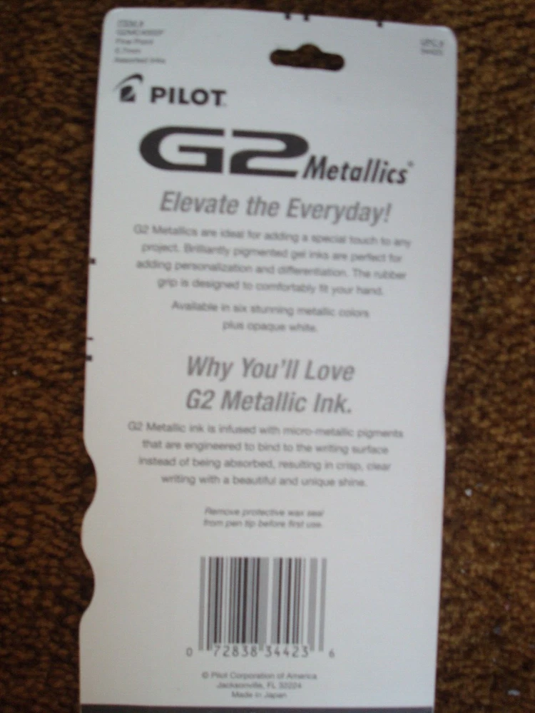 PILOT G2 METALLICS GEL PENS FINE 0.7MM ASST INKS BRILLIANT METALLICS INK SMOOTH WRITING #34423 ITEM G2MC4002F THANK YOU FOR LOOKING