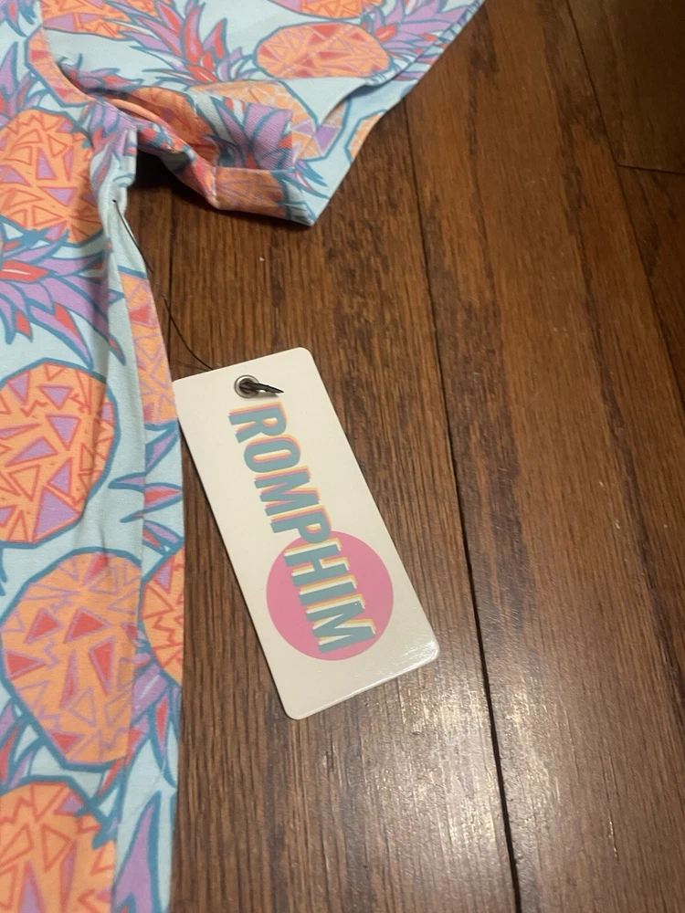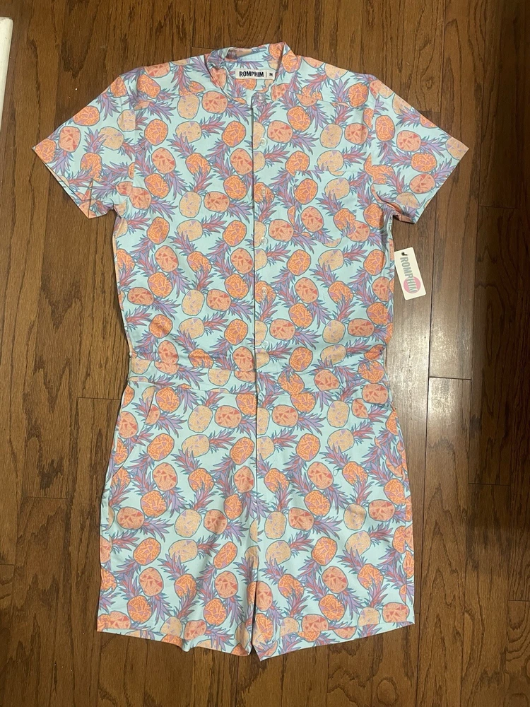 PINA COLADA ROMPHIM pineapple tipsy elves size M men’s NEW Vibrant colors, pockets at front and back, button closure. Green aqua color with orange and purple pineapples all over. Super cool and eye catching! Instagram: nina_benok