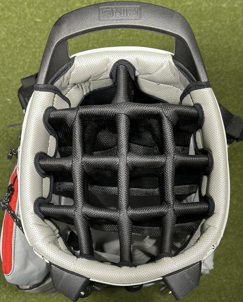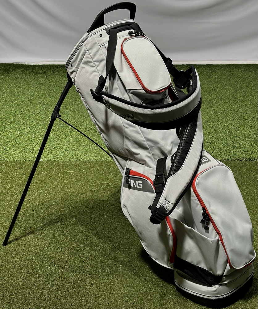 We are a reputable golf company that has been in business in St. Louis, Missouri since 1975. We have been doing this for 40 years because we do things right the first time. WE HAVE THE FASTEST SHIPPING ON EBAY! Don't believe us? Check out our Feedback. If you have questions, please feel free to ask. As always, thank you for looking. PING Hoofer 14 Stand Golf Bag COLOR: Light Grey / Red STYLE: Stand Bag DIVIDERS: 14-Way Divider CONDITION: New w/ Tags - See Pics (10/10) RAIN HOOD: Included The 14-way top is an organized golfer’s ideal arrangement, making club selection easy and orderly. To improve club removal and replacement, an innovative bag bottom guides clubs to the correct segment and keeps them separated while carrying or carting. A slimmer stacked pocket configuration allows for easier access to all 17 pockets. Made from rugged 300D polyester, Hoofer 14 sports a number of new colorways. Base With Club Dividers An innovative new bag bottom improves club removal by guiding clubs to the correct segment and keeping clubs separated while carrying. 14-Way Top The re-engineered top is more ergonomic to improve comfort and ease of handling, and 14 dividers give clubs individual attention and protection. Elevated Pocket Unique to the Hoofer 14 is a new elevated access pocket so no bending is required to access items that you want within easy reach. Big Ball Pocket An expanded ball pocket prevents the hassle of having balls spill out the sides when you have to poke around for a couple of fresh ones. Organized System A new stacked pocket configuration optimizes storage space and allows quick access the pockets you’ll use most often. Cart-Strap Channel This long-popular attribute enables you to keep the bag secured with a strap without blocking access to the pockets. Specifications: 14-Way Top 5.9 lbs. 17 Pockets 24L Pocket Volume Bag Bottom Design Improves Club Removal Leg Guards Help Leg Separation When Carrying Padded, Convertible Shoulder Straps Elevated Access Pocket Ergonomic Top Eases Handling Magnetic Rangefinder Pocket Water-Bottle Pocket Zippered Rain-Hood Pocket Cart-Strap Channel 300D Polyester