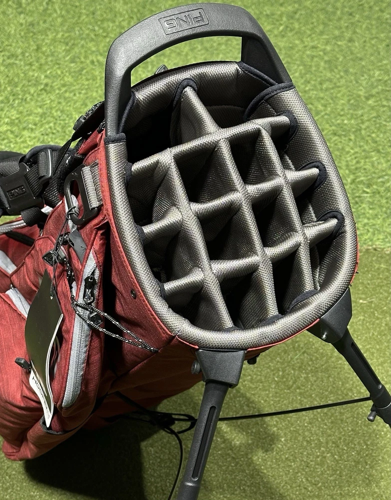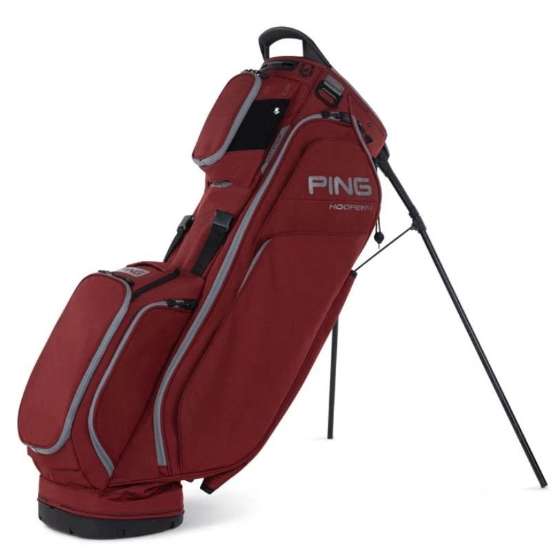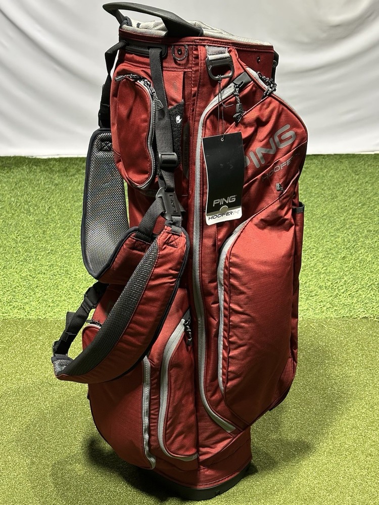 We are a reputable golf company that has been in business in St. Louis, Missouri since 1975. We have been doing this for 40 years because we do things right the first time. WE HAVE THE FASTEST SHIPPING ON EBAY! Don't believe us? Check out our Feedback. If you have questions, please feel free to ask. As always, thank you for looking. PING Hoofer 14 Stand Golf Bag (2026) COLOR: Deep Red / Pewter (Gray) STYLE: Stand Bag DIVIDERS: 14-Way Divider CONDITION: New w/ Tags - See Pics (10/10) RAIN HOOD: Included The 14-way top is an organized golfer’s ideal arrangement, making club selection easy and orderly. To improve club removal and replacement, an innovative bag bottom guides clubs to the correct segment and keeps them separated while carrying or carting. A slimmer stacked pocket configuration allows for easier access to all 17 pockets. Made from rugged 300D polyester, Hoofer 14 sports a number of new colorways. Base With Club Dividers An innovative new bag bottom improves club removal by guiding clubs to the correct segment and keeping clubs separated while carrying. 14-Way Top The re-engineered top is more ergonomic to improve comfort and ease of handling, and 14 dividers give clubs individual attention and protection. Elevated Pocket Unique to the Hoofer 14 is a new elevated access pocket so no bending is required to access items that you want within easy reach. Big Ball Pocket An expanded ball pocket prevents the hassle of having balls spill out the sides when you have to poke around for a couple of fresh ones. Organized System A new stacked pocket configuration optimizes storage space and allows quick access the pockets you’ll use most often. Cart-Strap Channel This long-popular attribute enables you to keep the bag secured with a strap without blocking access to the pockets. Specifications: 14-Way Top 5.9 lbs. 17 Pockets 24L Pocket Volume Bag Bottom Design Improves Club Removal Leg Guards Help Leg Separation When Carrying Padded, Convertible Shoulder Straps Elevated Access Pocket Ergonomic Top Eases Handling Magnetic Rangefinder Pocket Water-Bottle Pocket Zippered Rain-Hood Pocket Cart-Strap Channel 300D Polyester