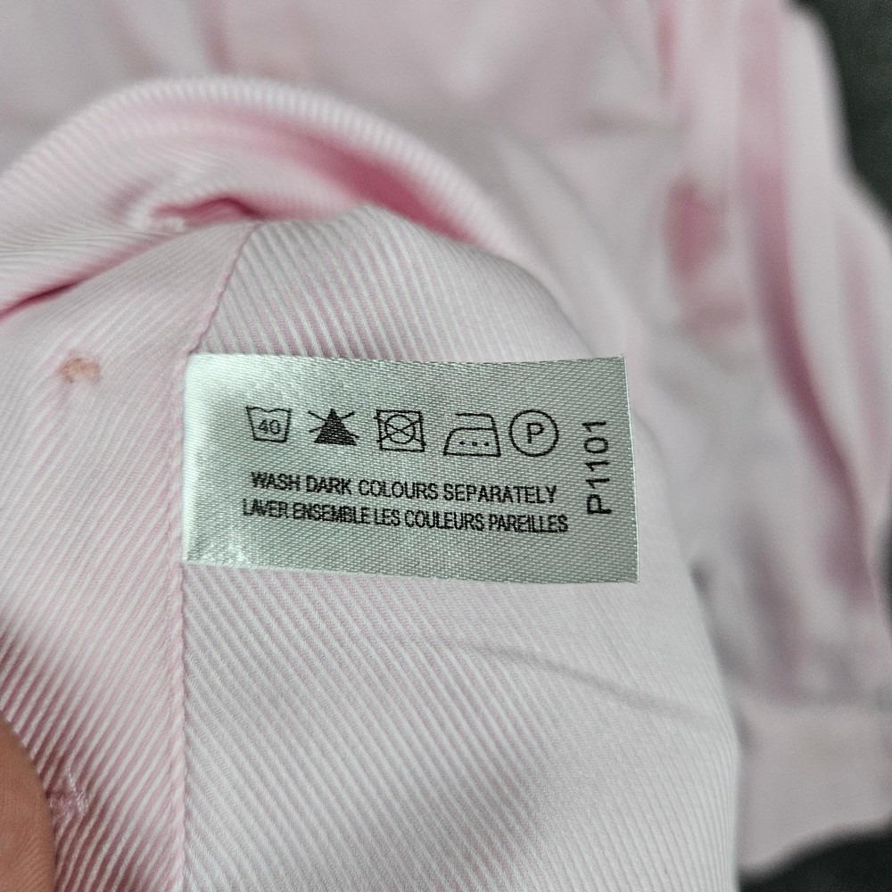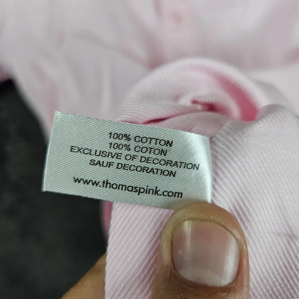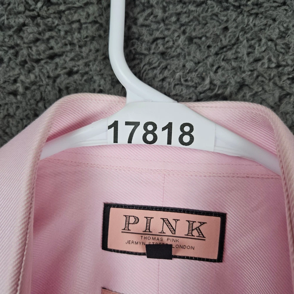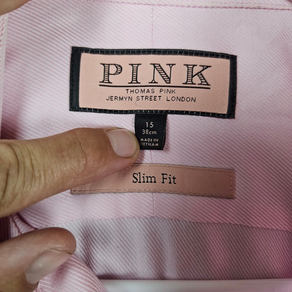 Type: Dress Shirt Sleeve Length: Long Sleeve Pattern: Striped Size: 15 Top Cuff Style: Barrel Cuff Material: 100% Cotton Neckline: Collared Color: Pink Size Type: Regular Brand: PINK Thomas Pink Collar Style: Spread Fit: Slim Neck Size: 15 in Features: Slimming, Wrinkle Resistant Vintage: No Department: Men Character: Classic, Preppy, Business, Refined, Elegant