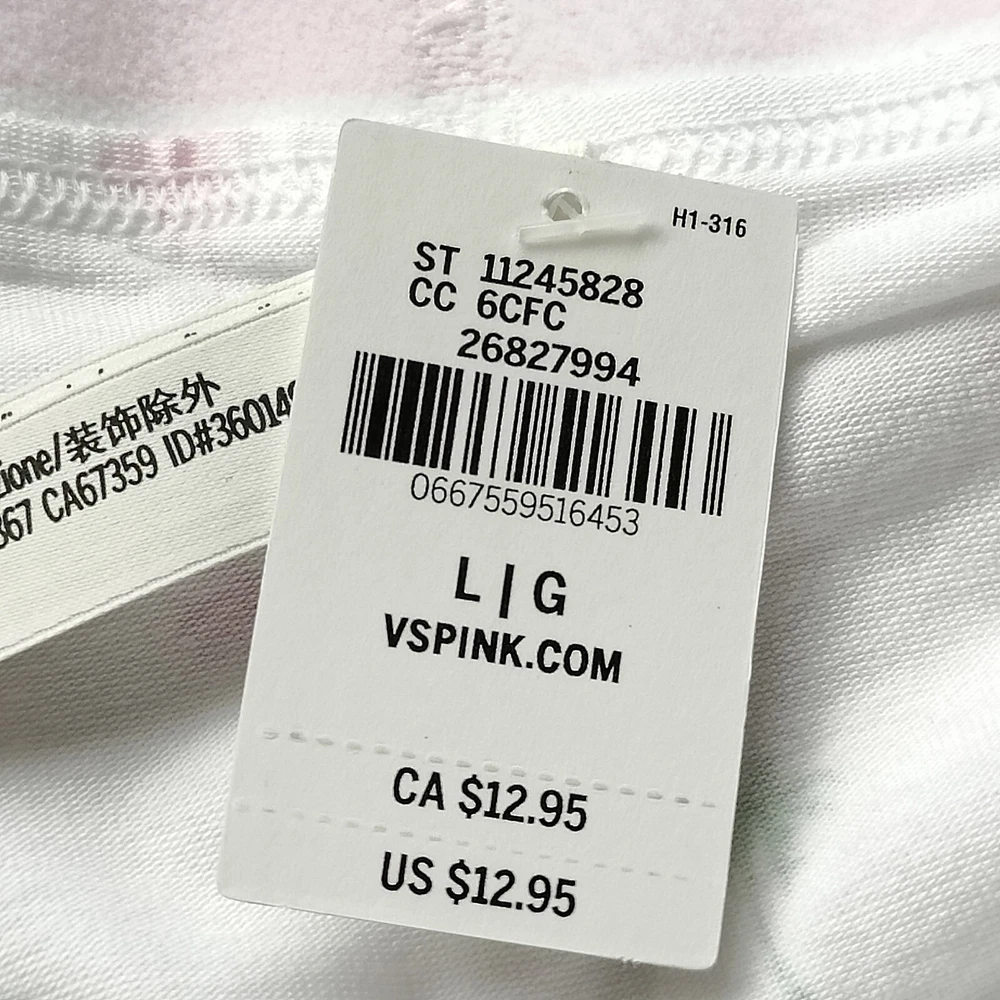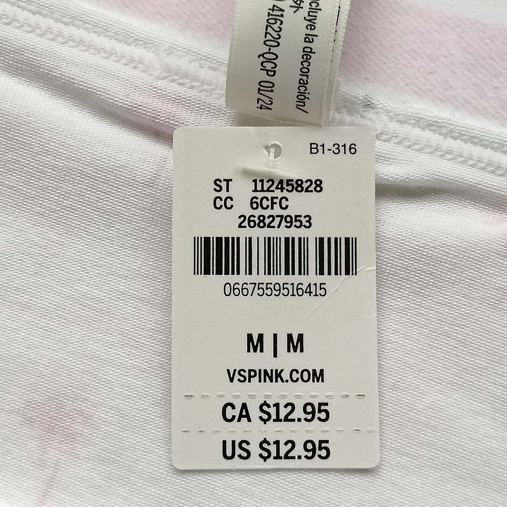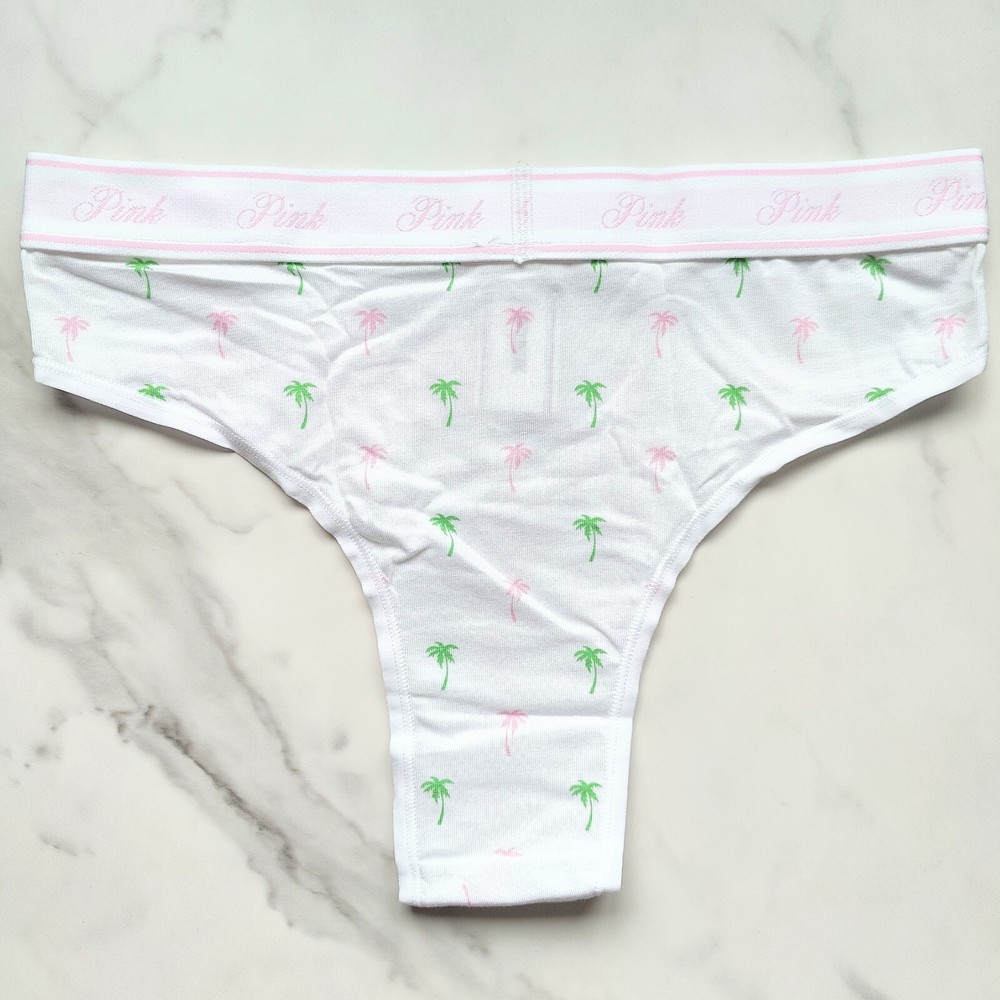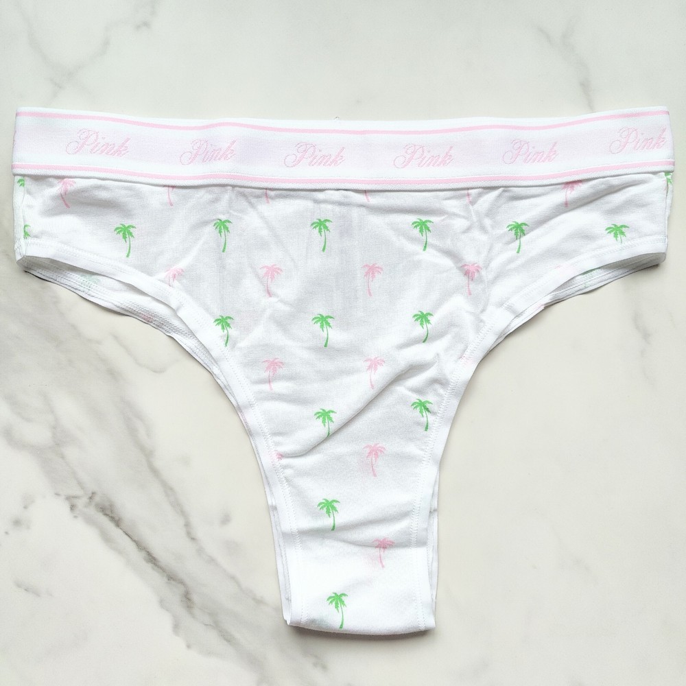 All photos are taken by Goob's Closet & Boutique and may not be reused without permission. Goob's Closet & Boutique lists on multiple platforms. If you choose to wait or "Watch", the listing may sell out on another platform first, and will then no longer be available for purchase on eBay without notice to you. Featuring a Brazilian bikini cut, this panty offers cheeky back coverage that enhances your natural curves while maintaining a sleek, mid-rise fit. The high-cut leg openings elongate your silhouette, adding a flattering touch. Crafted from a smooth and stretchy cotton modal blend, the fabric feels soft and breathable against your skin, making it perfect for all-day wear. The signature PINK logo elastic waistband not only adds a stylish, sporty edge but also provides a snug and comfortable fit. Elastic around the leg openings ensures this panty stays in place, allowing you to move freely while feeling secure. Details Brazilian Bikini Style Cheeky Back Coverage Mid Rise High-Cut Leg Openings Smooth Stretch Cotton Modal Fabric Body Soft Stretch Pink Logo Elastic Waist Elastic at Leg Openings Style No. 11245828 Material Body/Gusset: 57% Cotton, 38% Modal, 5% Elastane Elastic: 76% Polyamide, 12% Polyester, 12% Elastane Care Machine Wash Measurements PINK Victoria's Secret Size Small (S) will fit US Size 4-6, Waist 26-27 inches, Hips 36.5-37.5 inches best. PINK Victoria's Secret Size Medium (M) will fit US Size 8-10, Waist 28-29 inches, Hips 38.5-39.5 inches best. PINK Victoria's Secret Size Large (L) will fit US Size 12-14, Waist 30.5-32 inches, Hips 41-42.5 inches best. PINK Victoria's Secret Size Extra Large (XL) will fit US Size 16-18, Waist 34-36 inches, Hips 44.5-46.5 inches best.