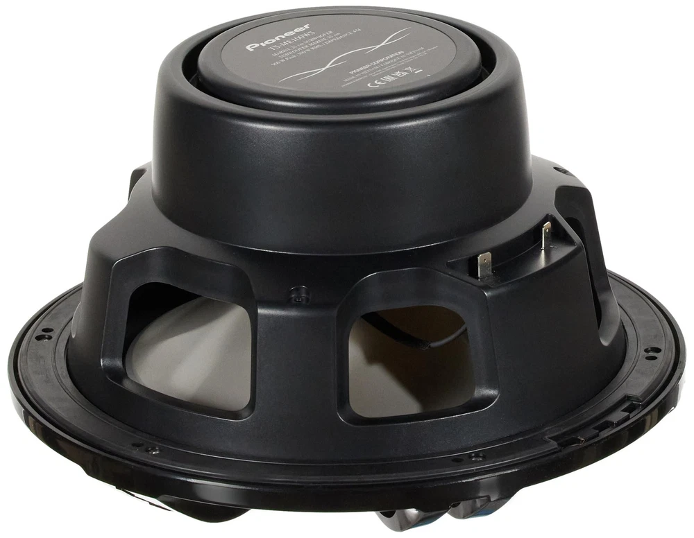 PIONEER CAR TSME100WS Single 10 inch 900 Watt Max Power, IPX7 Rated, Sports Grille Design - Marine Subwoofer White and Black Sports Grilles Included Single Woofer with two different color grills both black and white || * Size: 10-in . * Design: 10-in Component Subwoofer. * Woofer Composition: Injected Molded Polypropylene . * Woofer Surround: Trex Plane. * Woofer Magnet Composition: Ferrite. * Warranty (must be purchased from an Authorized Pioneer Dealer): 1 Year || Marine || * Water Resistant: IPX7. * UV Resistant: ASTM D4329. * Grille Style: Black and White Sports Grilles Included || Installation Specification || * Max. Music Power (Nominal): 300W RMS / 900 W PEAK. * Frequency Response: 20 Hz to 3.5 kHz. * Sensitivity (1W/1 m): 84 dB. * Impedance: 4 Ohms. * Mounting Depth: 5-in (126mm). * Cut-Out Dimensions: 8-7/8-in Dia. (f225mm). * Free Air Operation: Yes. ME-Series Marine Entertainment Combining Pioneer Sound Quality with All-Weather Durability. Pioneer's ME-series marine subwoofers are protected from the effects of sun and water exposure, meeting both IPX7 & ASTM D4329 to achieve all-weather reliability. Utilizing a Mica reinforced IMPP(TM) monocoque cone and a butyl rubber surround, they are constructed using advanced in-mould bonding techniques, meaning they have superior water resistance whilst maintaining high quality and a powerful sound. Internally, a symmetrical motor design combined with high strength suspension optimises stability, linearity and clear, low distortion sound reproduction. || The TS-ME100WS comes with both white and black pearlescent sports grills, so you can match your cabin interior and lifestyle. || If you want to personalise and add an extra touch of colour, Pioneer created the optional UD-ME100LED RGB LED illumination light kit, sold separately, that can illuminate the colour of the woofer to any colour you like. || Pioneer's TS-ME100WC ME-Series speakers are 900 W Max. / 300 Continuous Power Handling (RMS), and are a perfect match with the Pioneer ME-series amplifiers and ME-series speakers.