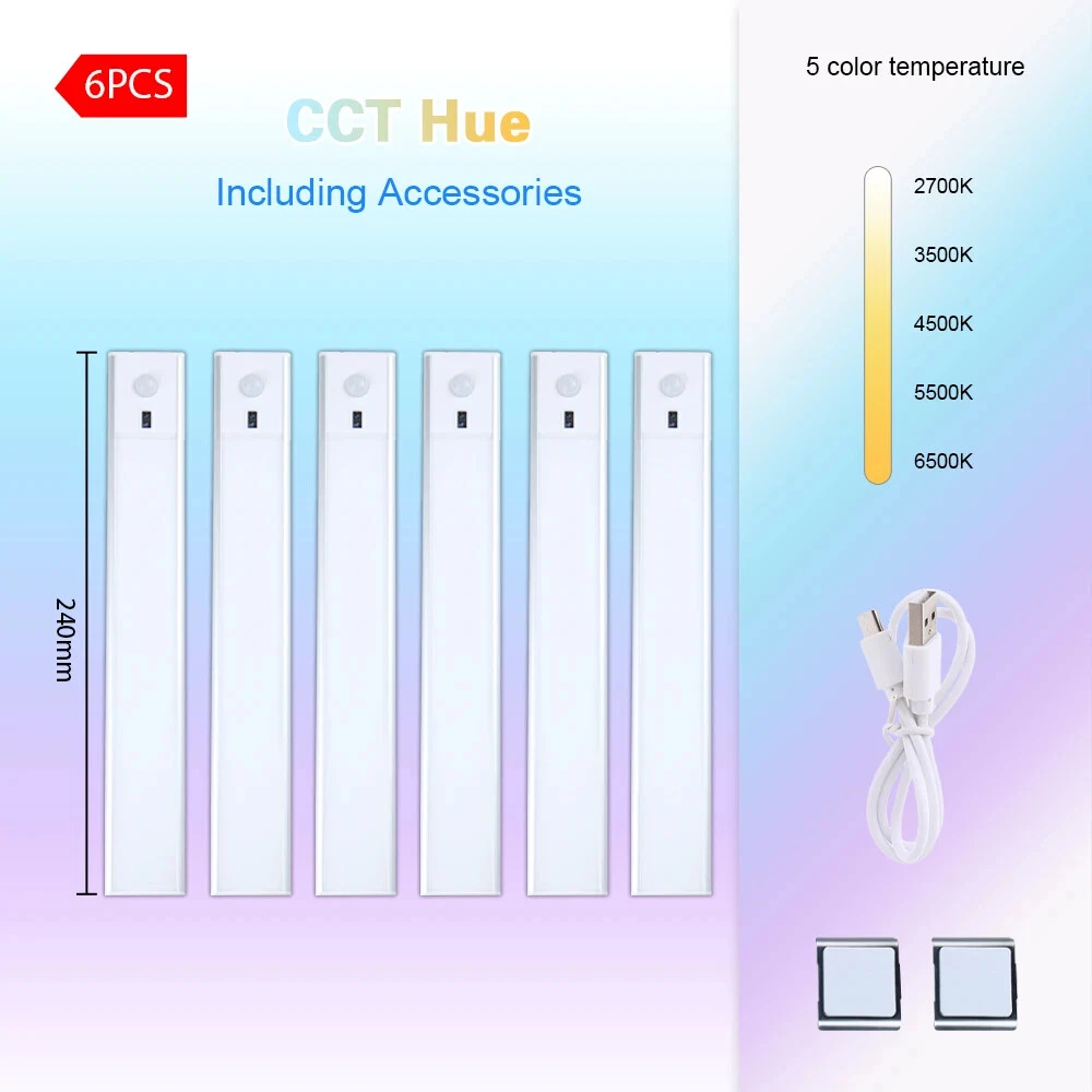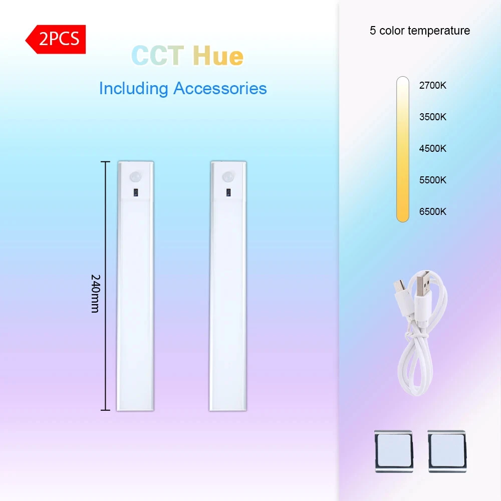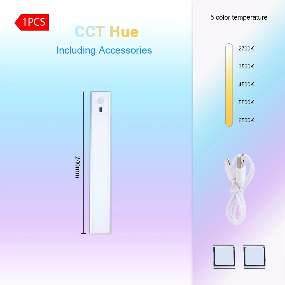 PIR Motion Sensor Light USB LED Night Light Type C Rechargeable Cabinet Lamp
