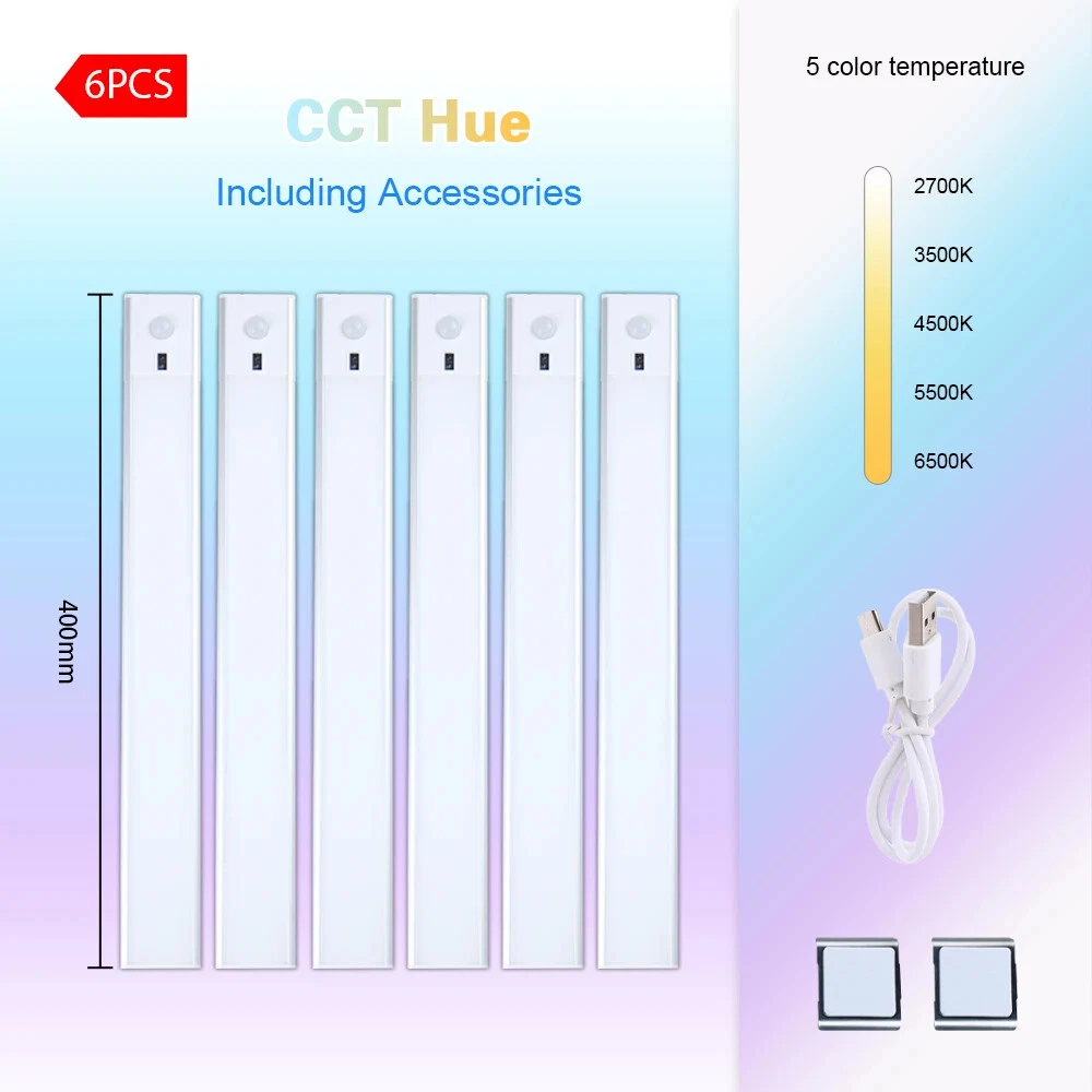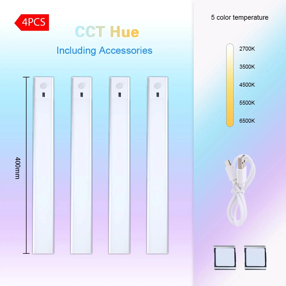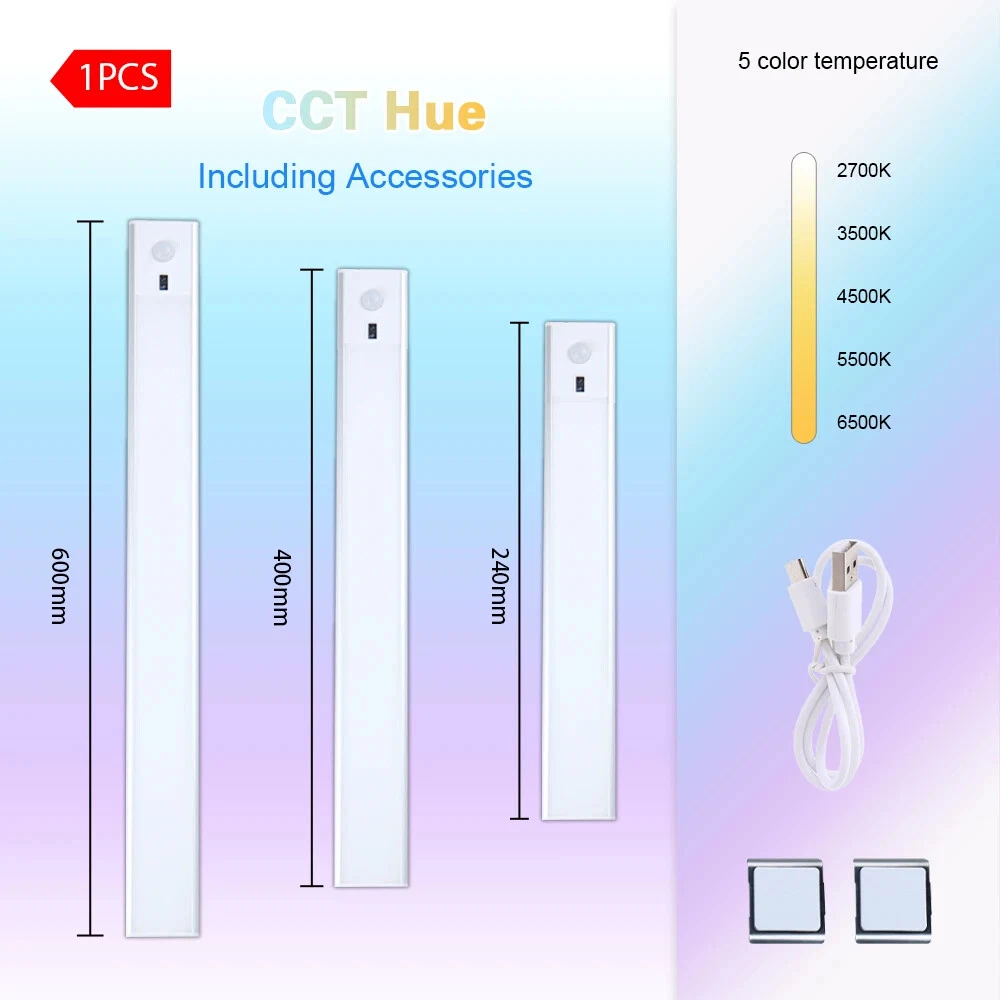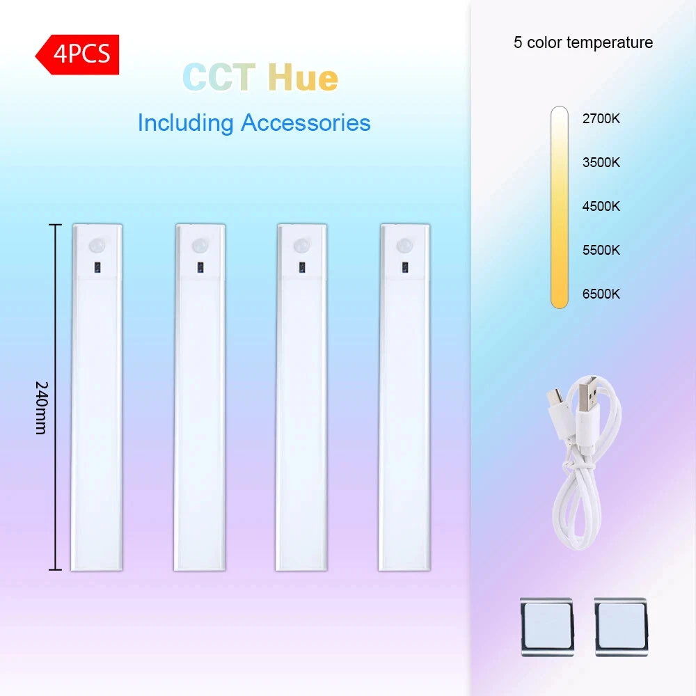 PIR Motion Sensor Light USB LED Night Light Type C Rechargeable Cabinet Lamp