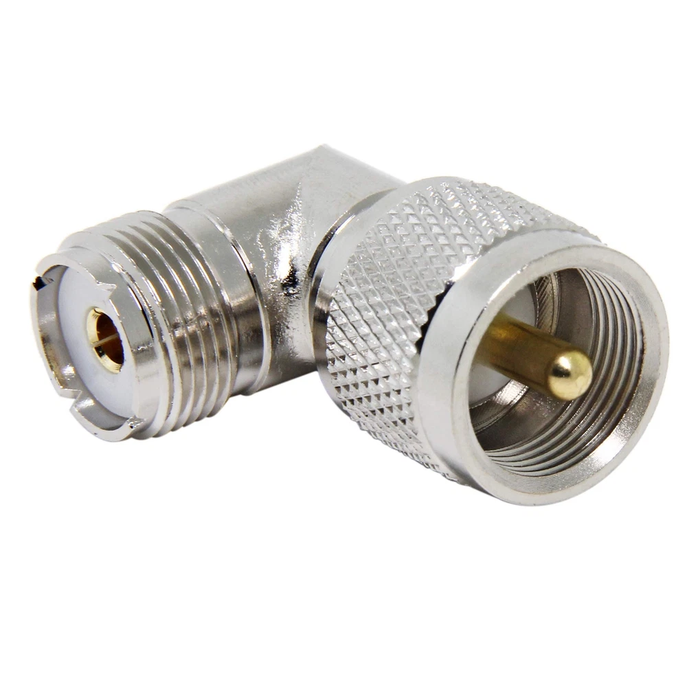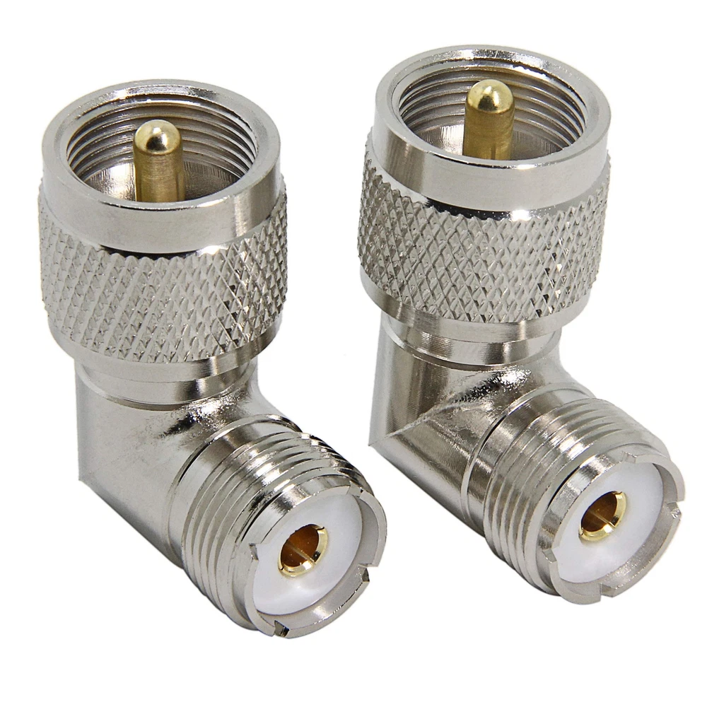 PL259 Right Angle, 2 Pack UHF Male to Female Coax Connector Adapter, 90 Degree Elbow for CB Ham Radio Antenna, Coaxial Cable UHF Male PL 259 to Female SO 239 adapter works great with CB radio antenna, coaxial cable, wireless LAN devices, Wi-Fi radios external antenna, etc. Good quality, made with copper material, gold plated contacts, nickel plated body for higher signal transmission and extremely low signal loss. Impedance: 50 Ohm. Coax 90 degree adapter can be used in tight spaces. Come with 2 Pack. Shipping We offer FREE shipping on all orders! We ship within Three business days of payment, usually sooner. We use a selection of shipping services such as UPS, FedEx, USPS etc. We only ship to the lower 48 states, no APO/FPO addresses or PO Boxes allowed. Local pickups and combined shipping options are not provided at this time. Return You can return a product for up to 30 days from the date you purchased it. Any product you return must be in the same condition you received it and in the original packaging. Please keep the receipt. Payment We accept payment by any of the following methods: PayPal Please pay as soon as possible after winning an auction, as that will allow us to post your item to you sooner! Feedback Customer satisfaction is very important to us. If you have any problem with your order, please contact us and we will do our best to make you satisfied. Contact Us If you have any queries, please contact us via ebay. We usually respond within 24 hours on weekdays. Please visit our eBay store to check out other items for sale! Thank you for shopping at our store.