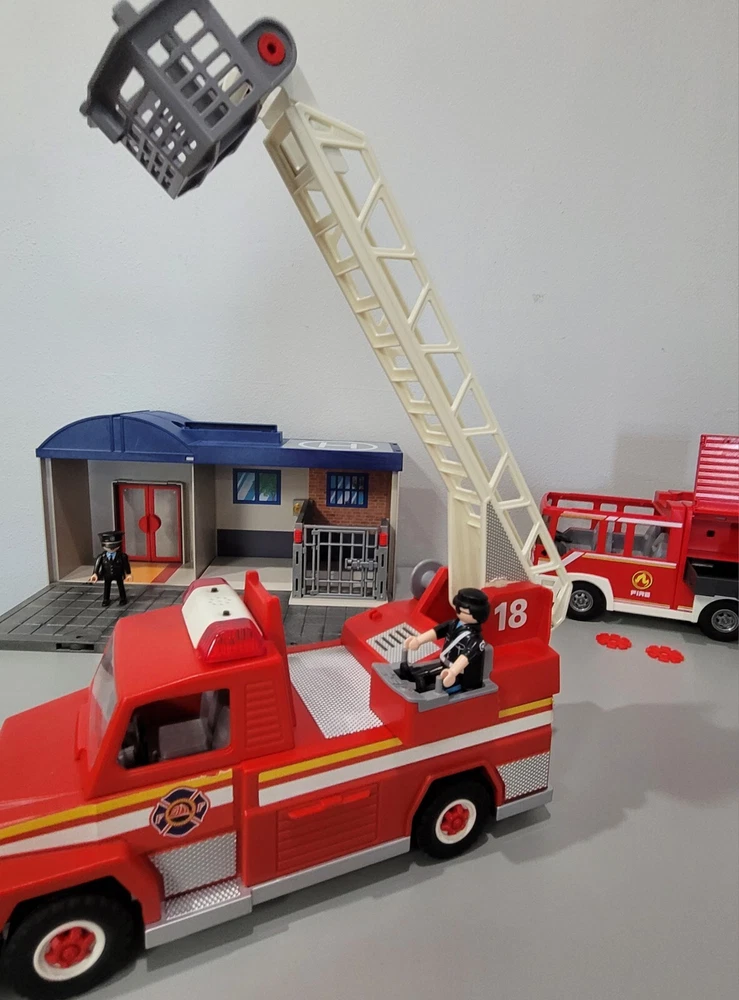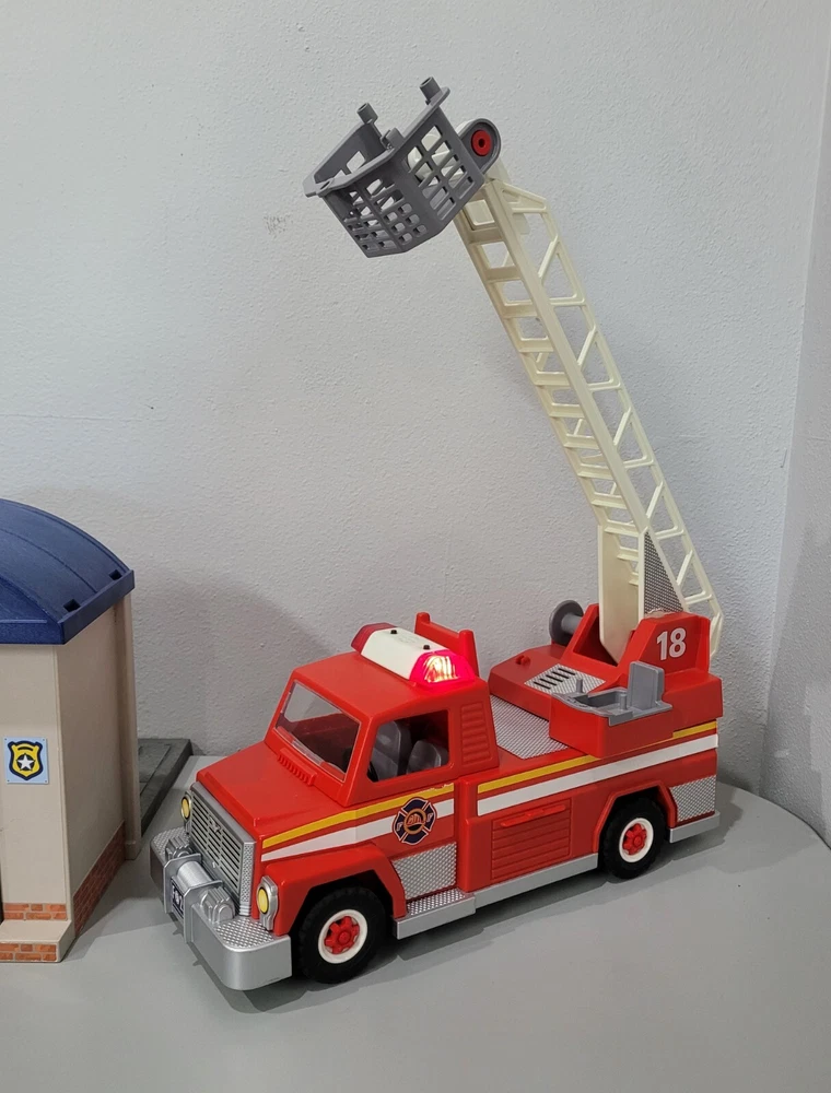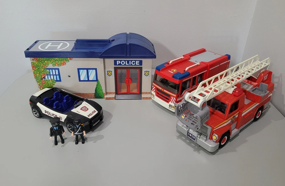 PLAYMOBIL City Action Police Station + FIRE ENGINE LADDER & EMERGENCY PUMPER LOT ✅️ ALL PRE-OWNED COLLECTIBLES COME CLEANED AND SANITIZED, THEN REPACKAGED IN POLYBAG FOR ADDED PROTECTION ✅️ Pieces come cleaned and sanitized - repackaged in polybags and ready to enjoy. Pieces are loose and set does not include any original packaging or accessories besides what is shown. Police Minifigures - 1992 / 1997 Police Station + Jail Pieces - 2011 Police Car (missing lights/ windshield) - 2014 Fire Emergency Ladder - 2012 Fire Engine Emergency Pumper - 2009 Lights and sirens on both Fire Trucks work as they should - battery terminals are clean and fresh premium-grade batteries will be installed prior to shipping. Set ships from WI in sturdy packaging - set ships free within USA using USPS or equivalent service. International shipping is available, standard delivery rates apply. Please reach out with any questions, and thanks for looking! Lot #PLAYMOBIL-EMS-LOT