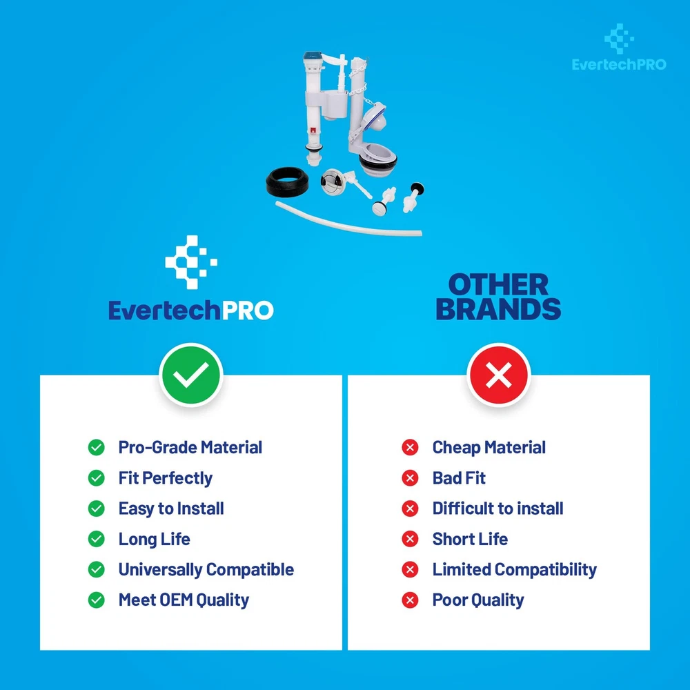 Introducing the fast flush toilet repair kit, a comprehensive solution for all your toilet flushing system woes. This universal toilet repair kit is your ultimate companion for maintaining the efficiency and performance of your toilet. It comprises a complete set of toilet guts replacement kit, flush valve replacement kit, and toilet pump replacement kit, promising full coverage for all your toilet repair needs. The toilet kit includes an easy-to-install 2-inch flush valve, fill valve, a high-performance flapper, and a toilet handle, ensuring your toilet rebuild kit is complete. It also comes with a tank to bowl gasket, integral to the proper functioning of your toilet system. The universal design of this kit makes it compatible with most toilet models, making it a convenient and flexible option for all households. Each component in this tank flush kit is designed for toilet universal replacement kit, enhancing the efficiency of your toilet flushing system. The toilet bowl flusher replacement kit is manufactured with premium quality materials, ensuring durability and longevity. The toilet flush repair kit is designed to resist corrosion, promising a long lifespan and excellent performance. The toilet repair kit comes with comprehensive instructions, ensuring easy installation even for those with minimal DIY skills. The kit provides a complete solution for toilet internal replacement, including the universal toilet flush valve making it the complete toilet repair kit. This toilet flush replacement kit is an all-in-one solution for complete toilet repair, saving you the hassle of purchasing separate parts. The universal toilet repair kit is your answer to a fast, high-performance, and efficient toilet flushing system. It is designed for universal fit, providing a complete toilet rebuild kit, catering to all your toilet repair and replacement needs. This kit is your one-stop solution for a fast and efficient toilet flush system, ensuring seamless operation and an enhanced bathroom experience. Experience the convenience of having a complete toilet kit replacement, designed for universal compatibility and easy installation. With universal toilet tank repair kit, get ready to upgrade your toilet system to a fast flush toilet, providing high flow and efficient flushing. Choose for a complete, reliable, and efficient toilet repair solution. Universal Toilet Repair Kit: The all in one toilet repair kit complete comes with 2 inch flush valve, tank to bowl gasket, fill valve, and a high-performance flapper. A solution for toilet pump replacement kit needs. Easy Installation and Instruction Included: The toilet flush kit features an easy installation process. A detailed instruction manual is included, enabling you to quickly and effectively install your toilet rebuild kit complete. High-Performance Flapper: The power flush toilet kit includes a high-performance flapper, which promotes high flow toilet flush, ensuring that your toilet operates efficiently. Toilet Replacement Kit: The toilet guts replacement kit universal is a comprehensive solution for toilet internal replacement kit needs. It includes a flush valve, fill valve, and toilet handle. Universal Design: The toilet bowl flush kit is designed to fit most standard toilets, making it the ideal choice for a toilet replacement kit, replacing the need for multiple individual parts.