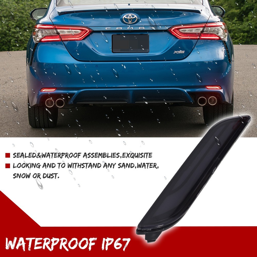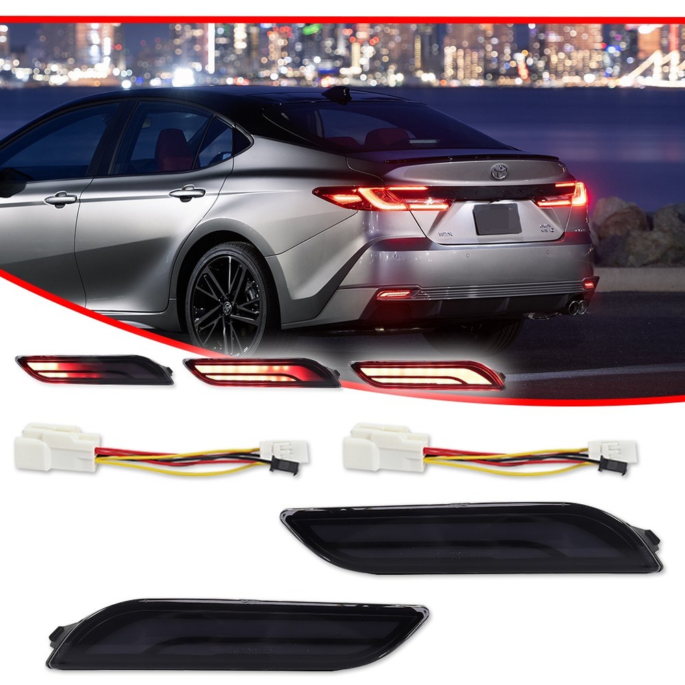 PLUG & PLAY For 2018-2025 Toyota Camry Red LED Rear Bumper Reflector Tail Lights PLUG & PLAY For 2018-2025 Toyota Camry Smoke Red LED Rear Bumper Reflector Light This auction features one pair of brand new 3D optic smoked lens red LED rear bumper reflector brake tail lights w/ sequential turn signal lights, rear fog lighting kit for Toyota Camry 2018-2025. This set of smoked lens LED rear bumper lights will elevate your car's appearance to complete its powerful presence as it drives down the street or pulls into a parking lot. If you wanted to upgrade your newly Camry rear reflector to LED lights, this lights will be your best choice ! These newly designed LED bumper reflector lights are inspired by the highly popular Optic LED tube tail lamps that you would see on many of those new Audi/BMW/Mercedes as well as 2015-up Lexus NX and LS. Lexus is known for their highly innovative futuristic design so you can get a pair of these LED bumper reflectors and show off that classy look. Installation is plug and play with no modification required. ☛Feature: 100% Brand new and quality Smoked lens LED Color: Red P owered by high power Brilliant Red LED SMD Exact fit and direct replacement OEM Part Number: TO 1185110 TO1185110 81910-06070 81920-06060 8191006070 8192006060 17-5771-00-1 17-5772-00-1 It replaces the stock Rear Bumper Red Reflector Assembly and functions as Add-on LED Tail Running / Brake Stop Light, Rear Fog Light, and Sequential Turn Signal Indicator Light in OEM fitment ( 3-in-1 ). DOT SAE approved Gives car a different appearance that is ideal for show use Lifespan: >50,000 hrs ☛Specification: T ype of Lights: LED Rear bumper tail brake signal light (3 in 1) with smoked lens reflector for Camry Waterproof: IP67 Lens color: Smoked Light color: Red ( Brilliant Red color temp. light ) Installation position: Rear Bumper Reflectors Ultrasonically sealed L ow power consumption; Quick Instant Start-Up time With the red lens full LED bumper reflector tail lights, your Camry will realize its potential and sport a unique, eye-catching look with added safety features. ☛Fit for: For Toyota Camry 2018-2025 *** Please verify your vehicle OEM manufacturer part number matches the one above before purchase *** Please check with our pictures to make sure you have the correct rear body kit for this LED bumper reflector light *** For detail US Spec, please refer to our compatibility list ☛ Applications Fitment of this LED bumper reflector tail brake light lamp: Direct Replace Original OEM Stock / Manufacturer Part Numbers: TO1185110 TO1185110 81910-06070 81920-06060 8191006070 8192006060 17-5771-00-1 17-5772-00-1 ☛Package included: One Pair (L&R) LED Rear Bumper Reflector Lights One Pair Pluy & Play Wire Kit ☛Installation: To install these LED bumper reflectors, you simply need to access to the back of the rear bumper, push to remove the stock bumper reflectors and directly replace back with these LED reflectors and then tap the wires accordingly. Direct replacement, plug and play with no modification needed Note: Professional installation is highly recommended! Payment Delivery details Terms of sales Contact us Feedback Payment We only accept payment via PayPal. Please make sure shipping address on your PayPal account is correct and up-to-date. Payment from bank account and all major credit cards will be accepted through secure payment processor PayPal. Delivery details Item will be shipped to buyer's PayPal shipping address within 1 business day after clear payment received. Tracking number of domestic orders will show up on buyer's eBay account once order is shipped. Please make sure shipping address on your PayPal account is correct & up-to-date. All of our items are shipped from our GA, USA warehous e. * Please note that post office doesn't process parcel on Saturday, Sunday & public holidays. Terms of sales Warranty policy: This item comes with 60 day exchange (replacement) warranty. Buyer could choose exchange to same item or apply store credit to other items in our store. Exchange will be processed after we received return. We only accept refund request for un-opened or un-used item, buyer has to return item in original condition and retail package within 30 day. 20% restocking fee will be deducted for all refund cases. Refund will be processed after we received return. Buyer is responsible for return shipping cost of ALL exchange/refund cases. We will cover shipping cost when sending out replacement. Products that are modified/customized are NOT covered by our return/exchange policy. Compatibility issue: Please check actual stock bulb model & housing size before purchasing replacement bulbs. Compatibility list on eBay listing is not a complete list and it is a known issue that there are errors on it. If you encounter model/functional compatibility issue, please contact us for assistance. We will help you exchange to compatible item (if available). We only accept refund request if we don't carry compatible item. 20% restocking fee will be deducted for ALL refund cases. Buyer is responsible for both return and resend shipping cost when exchanging an item with compatibility issue. We will cover resend shipping cost if compatibility problem is directly caused by incorrect information on listing. Buyer will be charged for price difference when upgrading to a more expensive model. Contact us Should you have any question/concern regarding our item/auction, please feel free to send us an eBay message. We will answer your question in a timely manner (within 12 hours in most cases). Reply will show up on your eBay account and goes to the email address associated with your eBay account. If you don't receive our reply within 2 business day, please kindly check your junk-mail box. If you are interested in bulk order, please contact us for a quote. Feedback We appreciate your business and strived to improve our customer service and our commitment to quality. We will leave a positive feedback imme