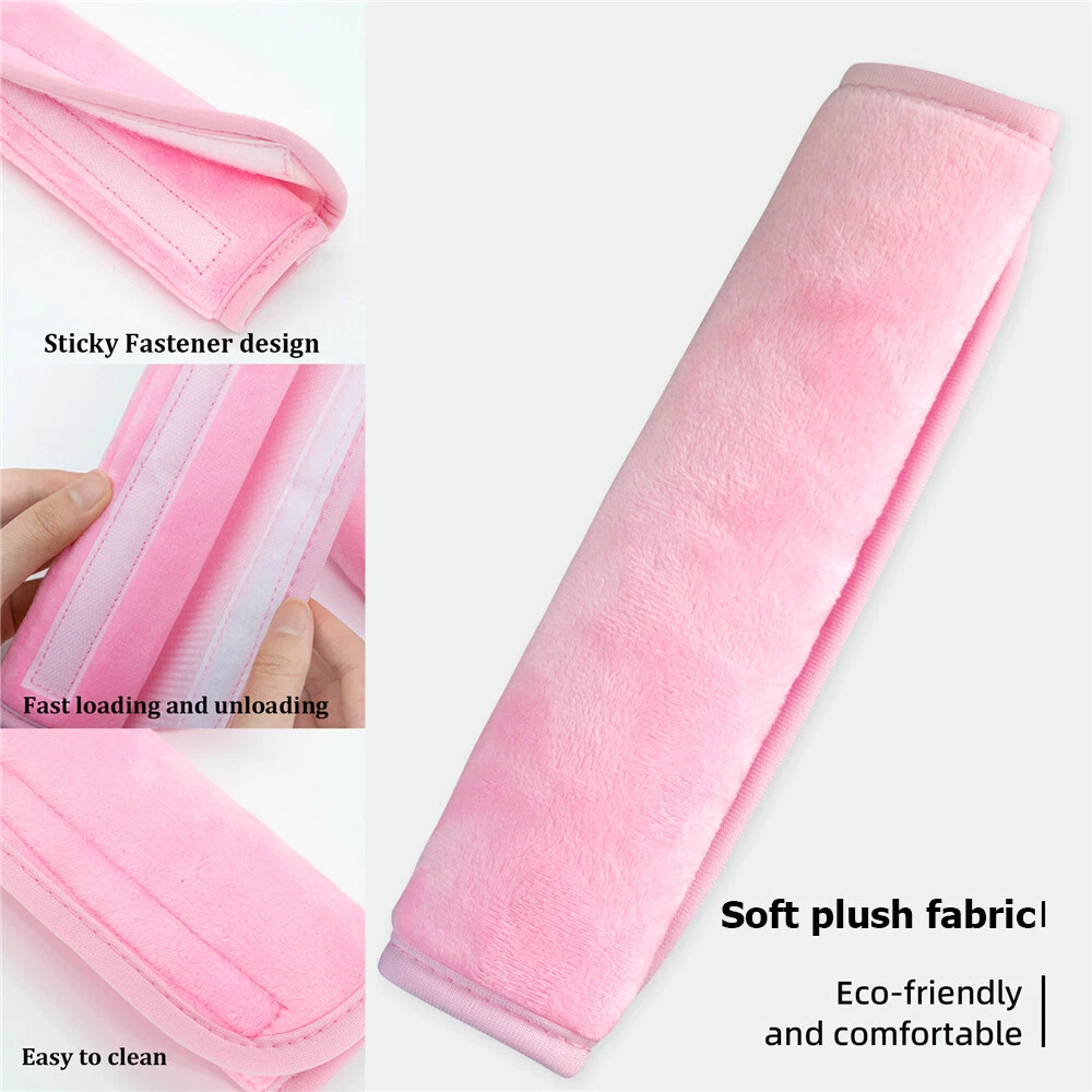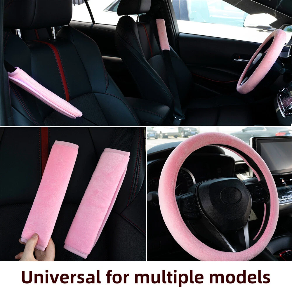 PLUSH Car Steering Wheel Cover Seat Belt Shoulder Pad Harness Fluffy Fuzzy Pink