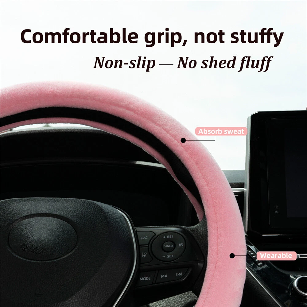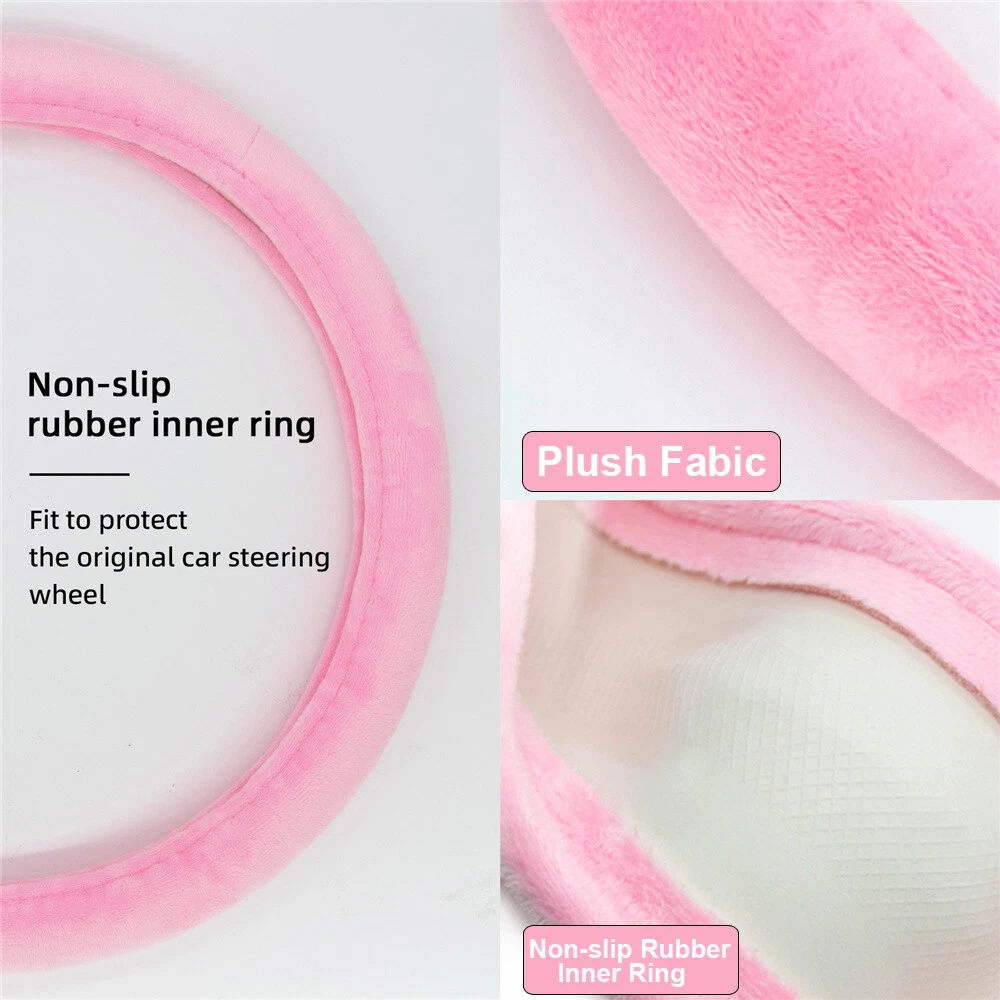 Suitable for: 37-38cm/14.5-15inch steering wheel in diameter Diameter: 38cm Special Features: Comfortable, soft, non-slip and Wear-resistant Color: Pink Manufacturer Part Number: Does Not Apply Material: plush+rubber inner ring Type: Steering Wheel Cover Item Sub-Type: Car Steering Wheel Cover Brand: XUKEY UPC: Does not apply weight: 638g gtin13: Does not apply Packing includes: 1X Steering wheel cover / 2X Seatbelt Pads
