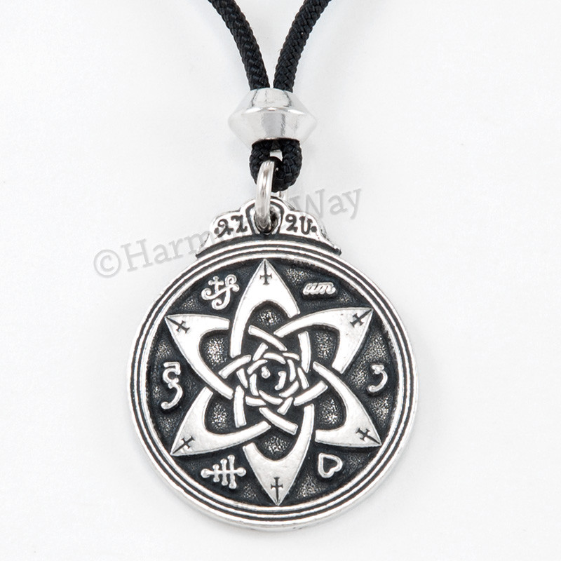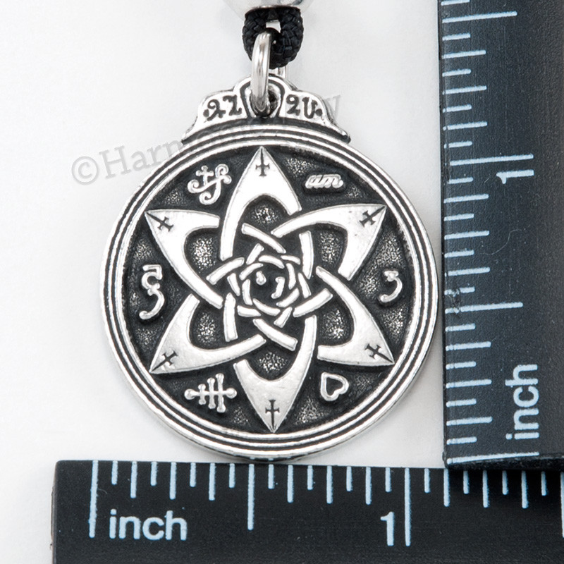 Talisman for Poets & Writers Pendant~ Our talismans are carefully chosen for their great powers and correctly prepared using the traditional methods of great age known to only a few skilled craftsman. Use them with goodness and wisdom as they are very powerful . Our talisman is updated from a design found in an ancient grimoire of magical symbols. The design consists of powerful Sigils of various Angels and Alchemical symbols around a rendering of a six-pointed star done in the Celtic style. These symbols are said to help one find the right word at the most opportune moment. Anyone wishing to embark on a career in radio, television, stage or screen will find this talisman a powerful and inspirational tool. May this pendant assist in all of your writing endeavors...poems, plays and books, even your personal journey! This piece is Superbly hand-crafted in the highest quality lead-free Pewter available. A unique finishing process is used resulting in one of the most beautiful lines of jewelry you can find! This pendant is brand new, detailed on both sides and comes with a 36" black cord with accent bead. 1 1/4" h x 1 1/8" w approx.