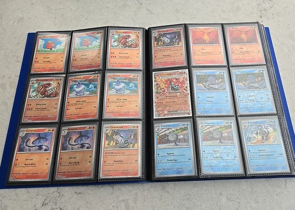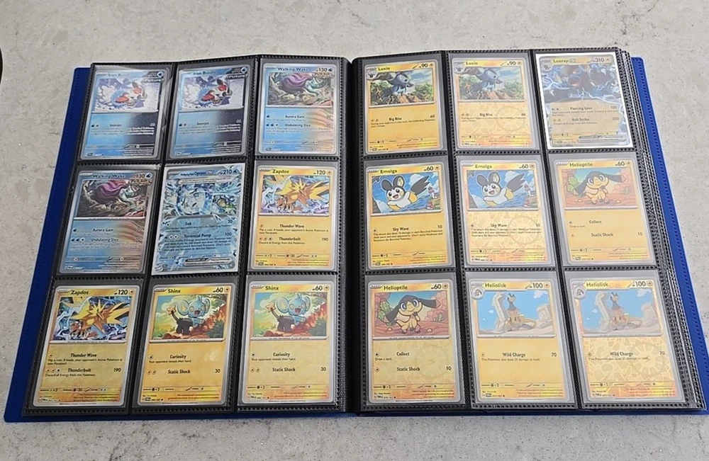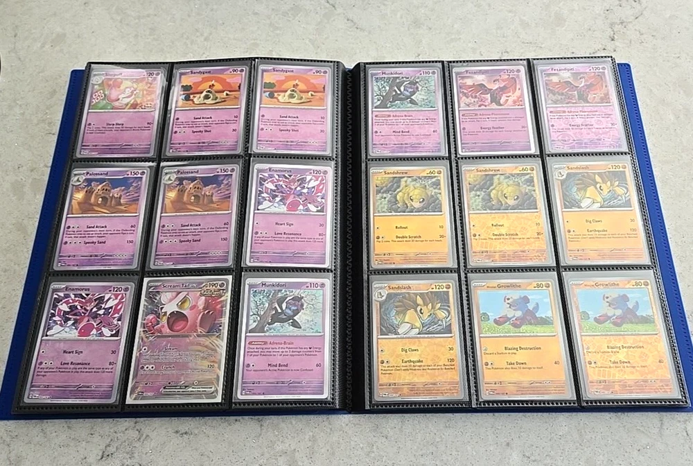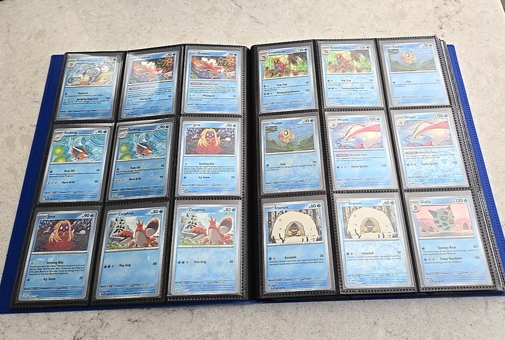2024 POKÉMON TWILIGHT MASQUERADE BINDER COMPLETE BASE CARD SET This Base Set consists of all cards 001 thru 167 Plus 147 Reverse holo, 8 Basic Energy and 1 Online Live cards! 323 Total Cards One of the best Starter Collection Sets you will find..... Everything included is pictured which includes: - Binder is the BLUE 9-Pocket Gorilla Trading Card Album Folder - 360 Side Loading Pocket brand - Set is organized in order with only one card per binder pocket. - All Common/Uncommon/Rare/Rare Holo/Reverse Holo/Energy cards were individually sleeved with Ultra Pro Card Sleeves before placed in binder pages. - All V, VMAX & PROMO CARDS. are sleeved in a Pokemon ETB Premium Sleeve with Gold backing , then put in binder pages. - Cards have not been played with and are Near Mint or Better condition. This set includes: (147) Commons, Uncommons and Rares cards (147) Reverse holo cards (14) Double rare cards (6) ACE SPEC rare cards (8) Energy cards (1) Live Online 323 Total Cards Everything will be safely packaged and shipped via USPS Priority Mail. Please see photos for condition. The item pictured is the exact item you will receive. If you are condition sensitive please do not hesitate to contact for in depth pictures. If multiple quantities are available, you may not get the exact card shown but one of the same condition. All Pokemon cards are in NM or better condition. Each card will be placed in a top loader Ultra Pro soft Penny standard card sleeve and then placed inside a Superior Quality standard top loader. Then packaged securely to ensure it arrives in perfect condition i n an eBay standard envelope with Free Tracking. Here is our condition scale: POKEMON CARDS: Please see photos for condition. The item pictured is the exact item you will receive. If you are condition sensitive please do not hesitate to contact for in depth pictures. If multiple quantities are available, you may not get the exact card shown but one of the same condition. MINT (MT) - Cards in (MT) condition are in flawless condition. No signs of wear present. NEAR MINT (NM ) - Cards in (NM) condition are close to (M), but can have slight scratching, edge wear, and or chiping. LIGHTLY PLAYED (LP) - Cards in (LP) condition have visible evidence of wear. This could be in the form of minor indents, whitening, nicks, and or scuffs. Eye appeal will be satisfactory. MODERATLEY PLAYED (MP) - Cards in (MP) condition have more advanced signs of whitening, minor to major indents, nicks, light creasing, and or scuffs. Noticeable wear. HEAVY PLAYED (HP) - Cards in (HP) condition have major whitening, indents, nicks, and or scuffs. Creasing and damage is likely to be present on these cards. This condition also includes damaged cards. Disclaimer: You are receiving the item that is listed. Just because something doesn't meet your grading standards doesn't allow for a return. Shipping Options: First Class Mail - $4.49 Orders $19.99 (excluding. sales tax) and under will be sent with free tracking information in an eBay approved white envelope. Orders $20.00 (excluding. sales tax) and over will be sent with free tracking information in a bubble mailer. Priority Mail - $9.99 2-3 Day shipping Orders will be shipped in a flat rate envelope. Priority Express Mail - $29.99 1-2 Day shipping Orders will be shipped in a flat rate envelope. *All orders over $100 will be sent with free insurance. All orders over $250 will be sent with free insurance and signature confirmation.* ebay Store Policies 1) PAYMENT - Please send payment within 24 hours of the closing auction or item. We make every effort to ship items the very next day after payment has been received, If you need more time, please contact us. 2) SHIPPING - See above . We always take great pride in wrapping your items. 3) COMBINE SHIPPING - I s available, we will make every effort to keep shipping costs as low as possible in every situation, and will give you options for shipping, where applicable. 4) INVOICES - W e do print invoices with your shipment. 5) PURCHASES - If you're unhappy with your purchase, please contact us first so we can rectify the situation. We treat our customers with the up most respect. 6) QUESTIONS - Please ask first before bidding. We try to take the best pictures to represent and item. With coins, grading is an art and we do our best to grade correctly, so please bid accordingly. 7) PROMISE - Your satisfaction is guaranteed, and we offer a no questions asked return policy within 30 days of purchase. Please see our feedback, we are very easy to work with and contact us for any reason if you are not happy with any purchase. Buy with confidence! USA Seller, ship fast, safely, and over 3800+ positive Feedback on our eBay Page! ____________________________________ Thank you for shopping with Sacagawea Dollar Store! We greatly appreciate your feedback!