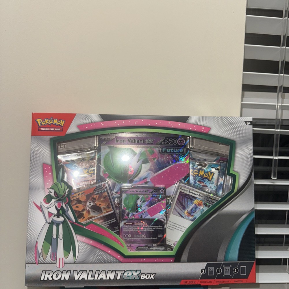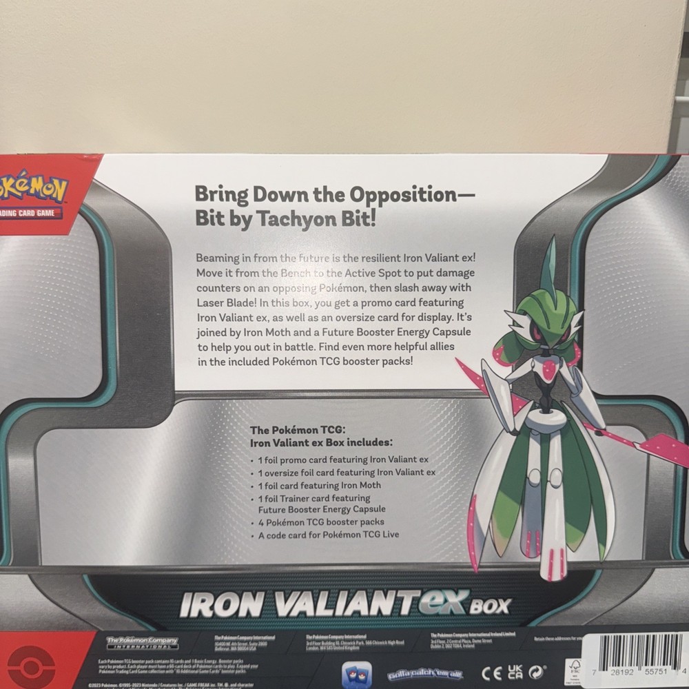 The Pokemon TCG Iron Valiant ex Box Set features 44 standard-sized cards featuring the character Iron Valiant ex. This factory-sealed set includes one box from the year 2023, manufactured by Nintendo. The set includes promo cards and boosters, perfect for Pokemon TCG enthusiasts to add to their collection. The box set is in English and suitable for ages 6 and up. Perfect for fans of the Pokemon League event, this set is a must-have for collectors and players alike.