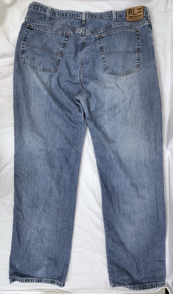 Features: Comfort Material: Cotton Seller Notes: “very good pre-owned see photos” Fabric Wash: Medium Department: Men Fabric Type: Denim Suspender Buttons/Belt Loops: Belt Loops Garment Care: Machine Washable Inseam: 34 in Style: Wide-Leg Vintage: Yes Country/Region of Manufacture: Mexico Pocket Type: 5-Pocket Design Size: 40 Brand: Polo Ralph Lauren Theme: 90s Type: Jeans Fit: Relaxed Rise: High (Greater than 12 in) Waist Size: 40 in Distressed: Yes Color: Blue Closure: Zip Size Type: Regular