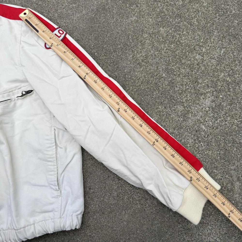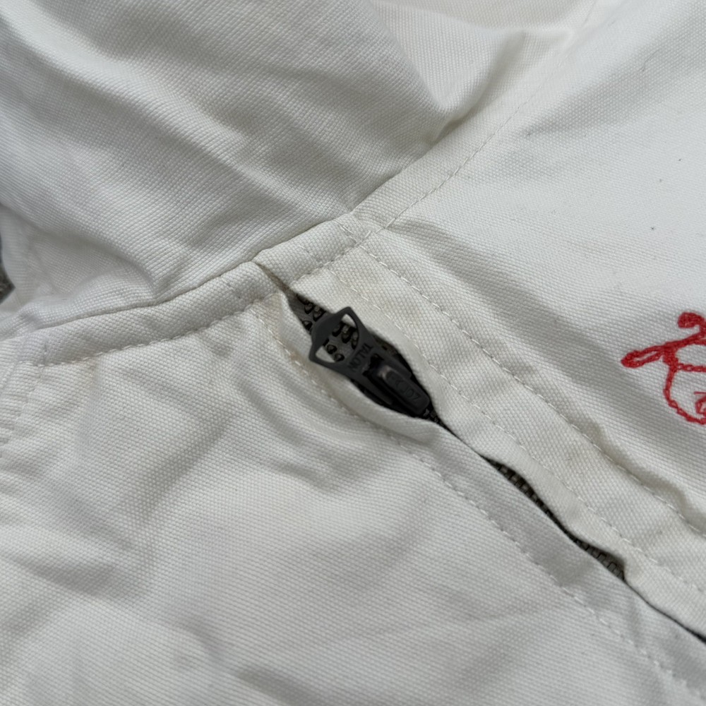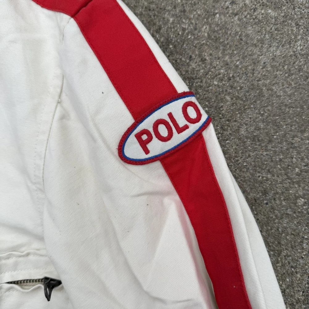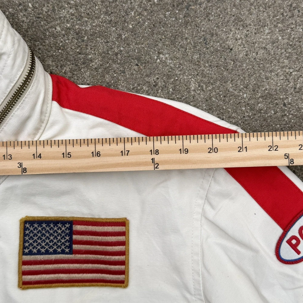 Authentic Polo Ralph Lauren “1967 Downhill Ski” racing jacket, an archive-inspired piece drawing from vintage alpine and motorsport uniforms. Features bold embroidered patches, signature red racing stripes, and classic Polo utility construction. This is a true Polo archive-style jacket with strong collector appeal. Original hang tags are still attached; however, this item is NOT brand new and shows signs of prior handling/storage. • “Ralph Lauren 1967 Downhill Ski” embroidered chest patch • Embroidered U.S. flag and USRL patches • Red racing stripes down sleeves • “Polo” sleeve patch • Script “R. Lauren” embroidery • Zip chest pockets • Ribbed cuffs • Adjustable drawcord hem • High collar with closure tabs ⸻ SIZE Tagged size: Men’s XXL ⸻ CONDITION (PLEASE READ) Pre-owned / vintage condition. Tags attached but NOT brand new. • Visible wrinkling throughout from wear or long-term storage • Light marks and minor discoloration visible in areas (see close-up photos) • Fabric, patches, embroidery, and structure remain solid • No major tears, holes, or missing components This piece has clearly been handled or worn, despite retaining original tags. Condition is consistent with an older collectible Polo jacket rather than a deadstock item. ⸻ AUTHENTICITY 100% authentic Polo Ralph Lauren. Original labels, patches, and construction consistent with genuine archive Polo outerwear. • Vintage item sold as-is • No returns due to fit or condition • Please review all photos carefully before purchase