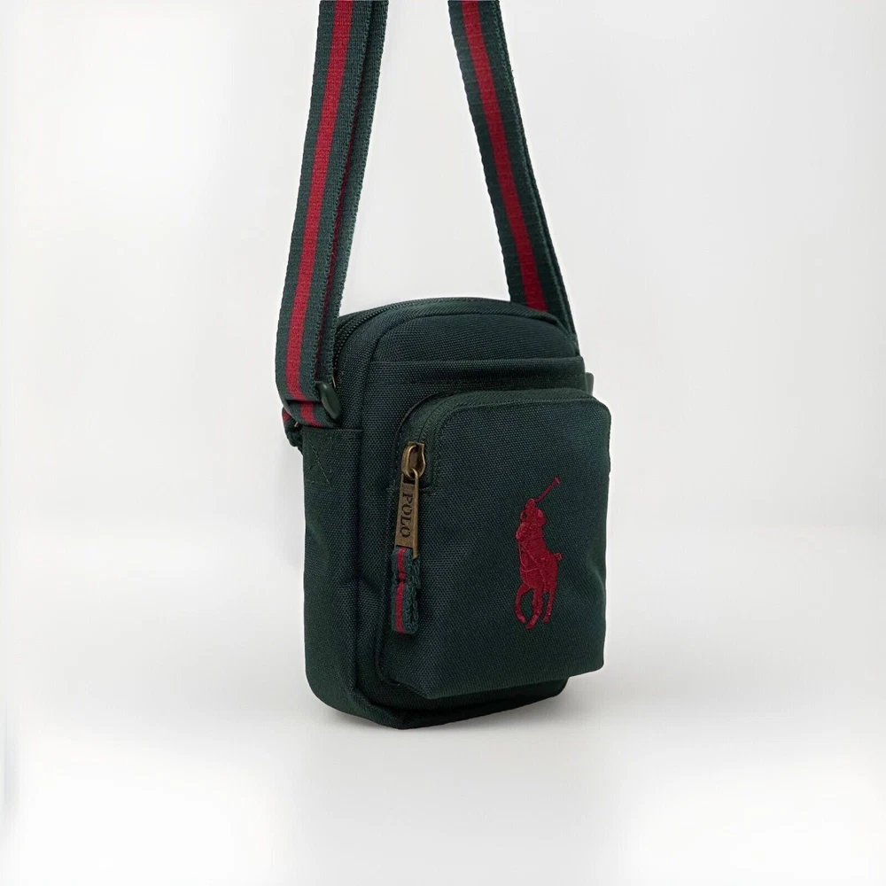 This Polo Ralph Lauren belt bag and fanny pack is the perfect addition to any festival-goer's outfit. With its vibrant green color and bold logo design, this bag is sure to turn heads. Made from durable polyester, it is designed to withstand the elements and keep your essentials safe and secure. The bag features a spacious interior with enough room to carry all your festival essentials, including your phone, wallet, and sunscreen. Its adjustable strap allows you to wear it comfortably around your waist, while the zip-top closure keeps your belongings secure. Whether you're heading to a music festival or a beach party, this Polo Ralph Lauren bag is the perfect accessory to complete your look.