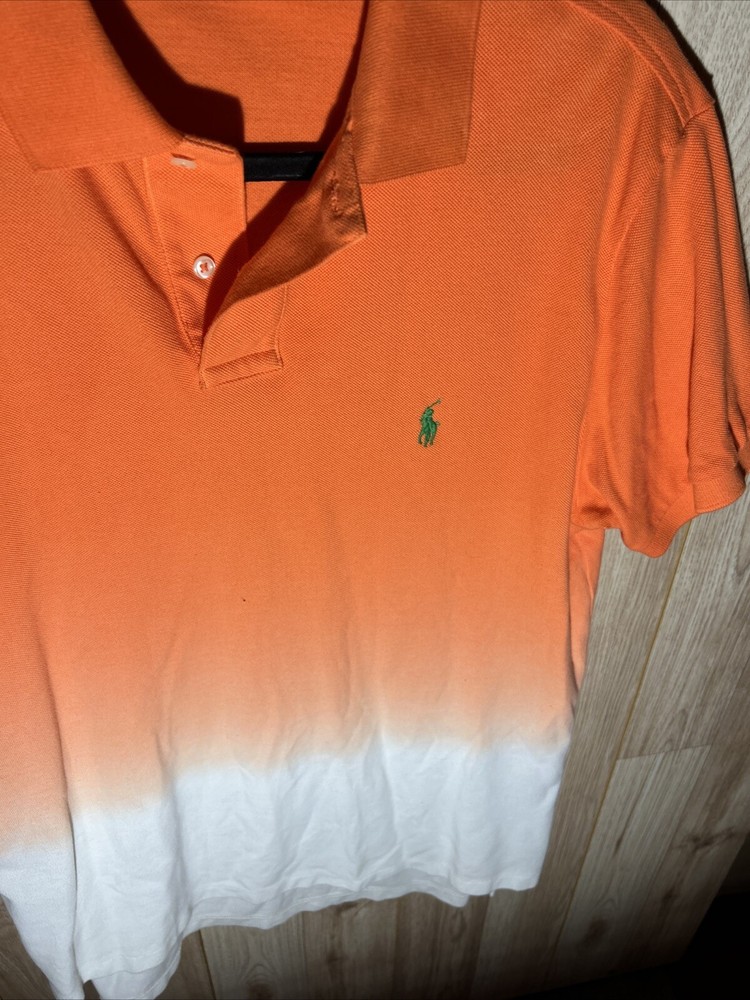 POLO Ralph Lauren Ombre Key West Orange Pony Collar Shirt Mens Large Dip Dye