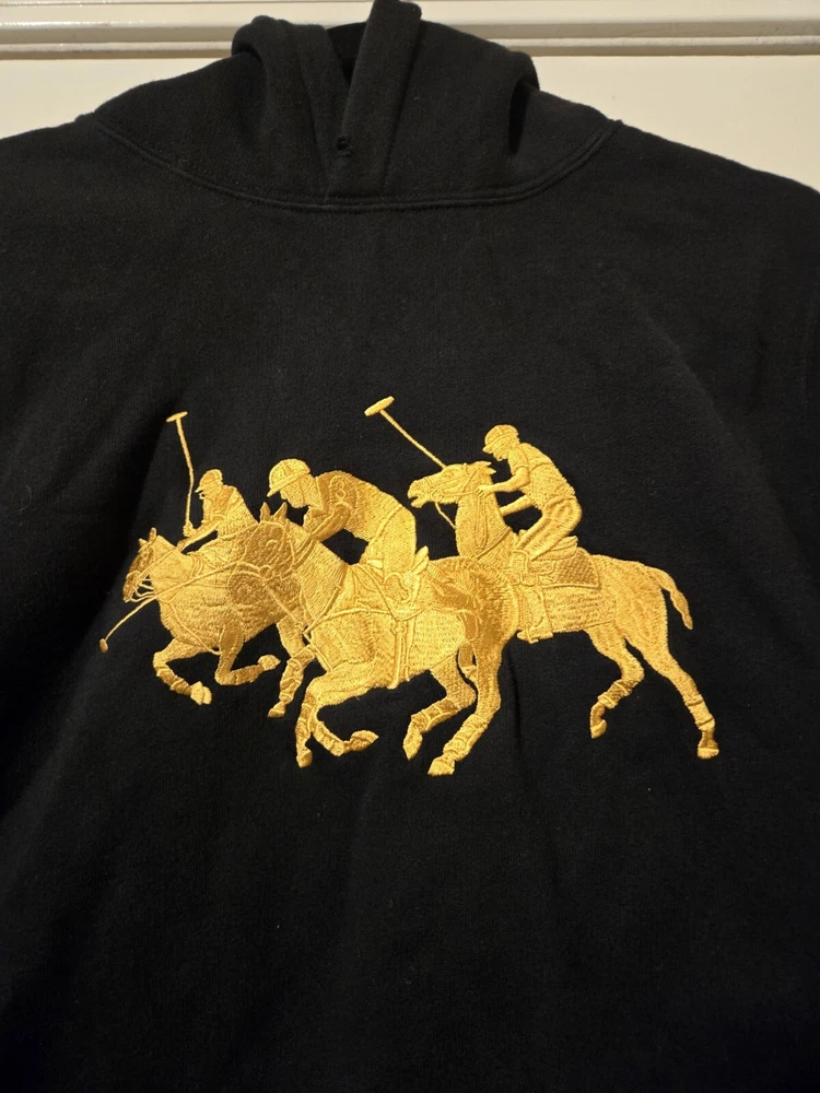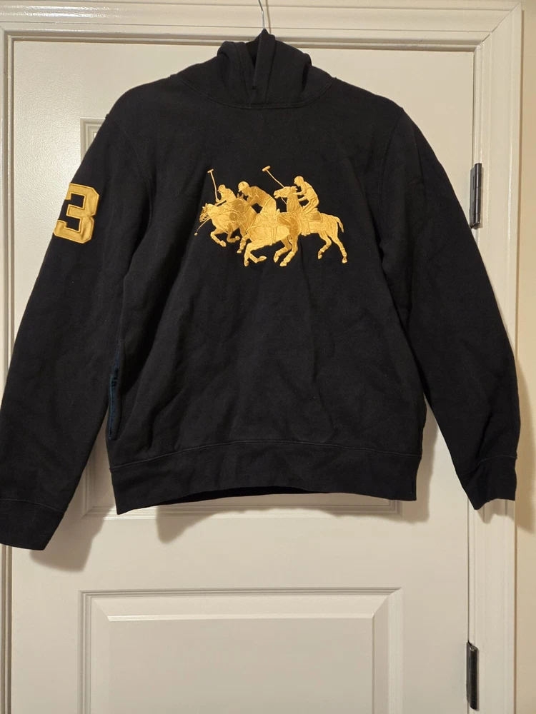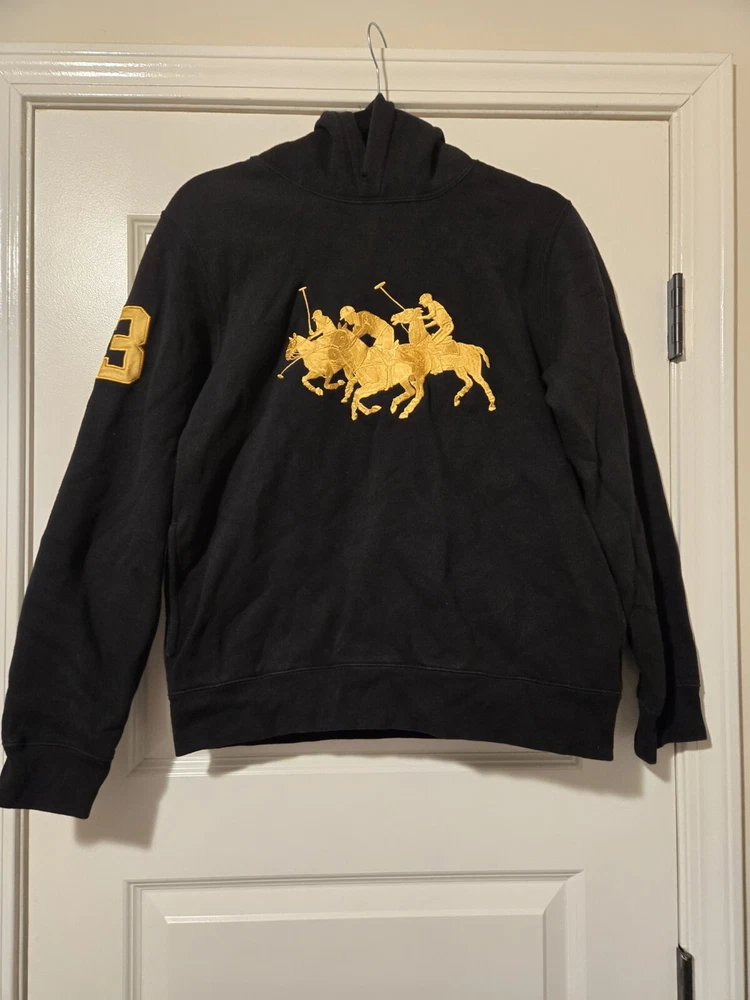 Material: Polyester, Cotton Department: Boys Color: Black Character: Boy Type: Hoodie Closure: Pullover Style: Pullover Size: XL Brand: Polo Ralph Lauren