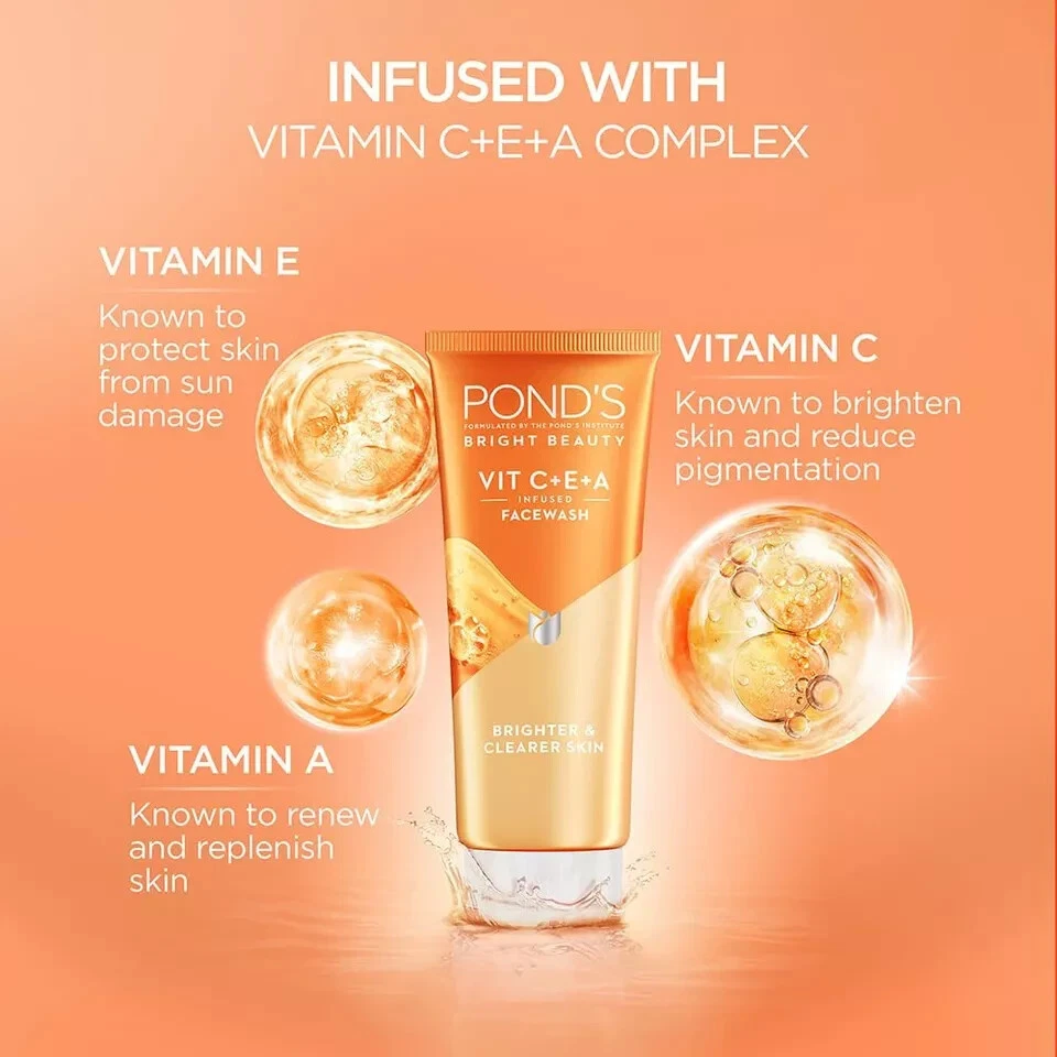Product description Introducing New Bright Beauty Vit C+E+A facewash, your ultimate solution for achieving brighter and clearer skin. Infused with vitamin C+E+A complex, this facewash is formulated to deliver refreshed skin instantly. Vitamin C, renowned for its skin-brightening properties and ability to reduce pigmentation, works in harmony with Vitamin E, which provides essential protection against sun damage, and Vitamin A, known for its skin-renewing and replenishing benefits. This powerful combination ensures your skin receives the nourishment it needs to thrive. Not only does this facewash effectively remove excess oil and impurities, but it also exfoliates the skin with micro wax beads, leaving your complexion refreshed. Its non-sticky gel texture provides a luxurious cleansing experience without any residue. In a consumer study conducted in 2023, the visible results speak for themselves. 100%* of women agreed that this facewash cleanses the skin gently, while 100%* reported an instant brightening effect. Furthermore, 99%* of women agreed that it cleanses better than their current facewash, showcasing its superior efficacy. Incorporate this facewash into your skincare regime for brighter, clearer skin that radiates with health and vitality. With its gentle yet effective formula, you can trust New Bright Beauty to deliver the results you desire. From the manufacturer