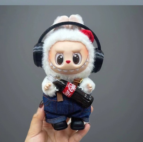 UPC: Does not Apply Features: labubu Theme: TV, Movie & Video Games Material: Plush Country/Region of Manufacture: China Character: POP Type: Set Year Manufactured: 2025 Genre: Movie & TV Occasion: All Occasions Color: Black gtin13: Does not Apply Number in Pack: 4-piece set: black headphones+overalls+black boots+cola bottle Franchise: Monster Packaging: 4-piece set: black headphones+overalls+black boots+cola bottle Brand: Handmade