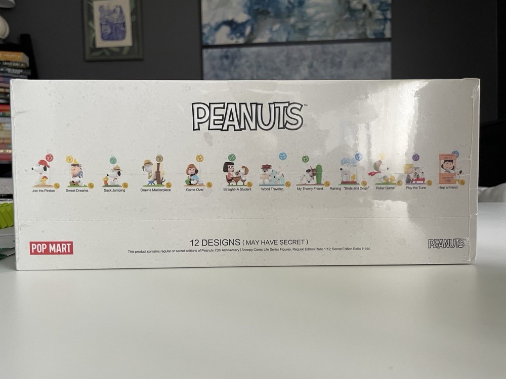 Peanuts 75th Anniversary | Snoopy Comic Life Series Whole set Designer: POP MART Release Date: May 9, 2025 SIZE: Height: 9.6-10cm / 3.78-3.94inches MATERIAL: PVC / ABS The whole set contains 12 non-repeating blind bags. Calling all Snoopy fans—it’s time to celebrate 75 incredible years of Peanuts. To mark this milestone, POP MART is releasing the Peanuts 75th Anniversary | Snoopy Comic Life Series Figures on May 9, 2025. This special series brings beloved moments from the original comic strips to life, capturing the warmth, wit, and charm that has made Snoopy and the gang a cherished part of pop culture across generations. Each figure reimagines iconic scenes from the Peanuts universe, from Snoopy’s vivid daydreams as a flying ace to the quiet, heartfelt moments with Woodstock. Designed with thoughtful detail and nostalgic appeal, this series is a heartfelt tribute to Charles M. Schulz’s legendary creation. Whether you're a lifelong fan or just discovering the magic of Peanuts, these figures offer a beautiful way to celebrate the stories that have brought comfort and joy to so many *Due to differences in measurement methods, the actual measurements may vary within a normal range of 0.19-0.39 inches. Actual product size and color may appear different due to lighting, display screen specifications, photography style and other factors. Display picture and size are for reference only.