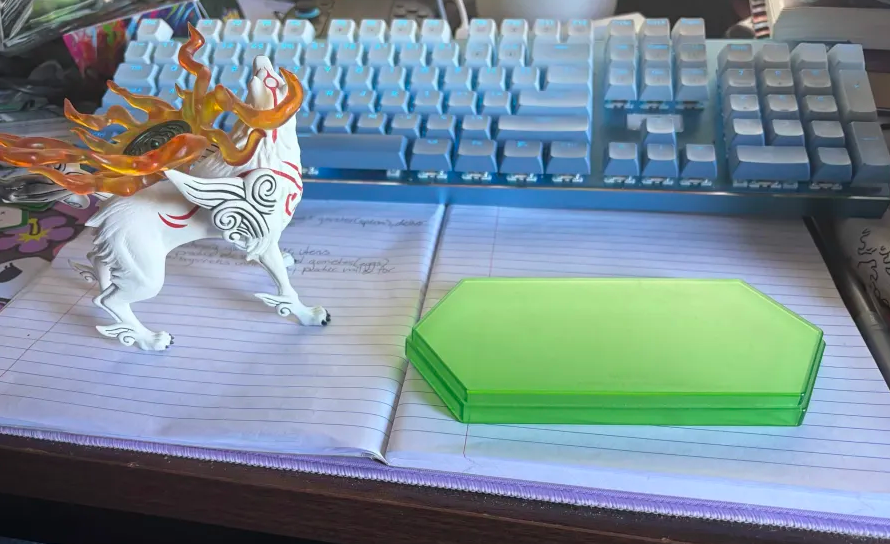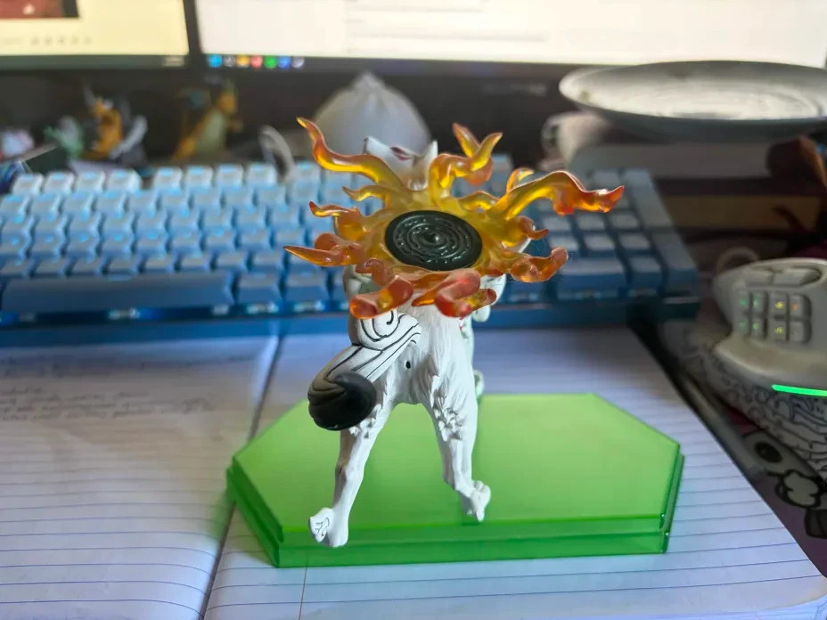 I'm not sure where Issun went; I WILL look for him, but this figure has clearly been displayed. It will be clean and packaged in its box for arrival. THE GREEN SPIKE BALL (Issun) WILL NOT BE THERE MOST LIKELY. If you bid/purchase, you accept this is an incomplete item. The stand does not have any grips or inserts; it was made that way. The figure does come off and on the platform.