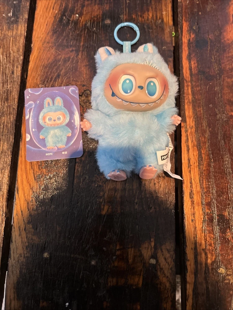 The POPMART Hope Labubu Plush Toy is a modern Japanese import featuring the popular blue character from the Cartoon & Characters theme. This plush toy, which includes a detachable keyring, is a must-have for fans of Labubu and collectors of pop culture merchandise. Perfect for adding a touch of whimsy to any collection or for displaying as a cute decor piece in a fan's room.