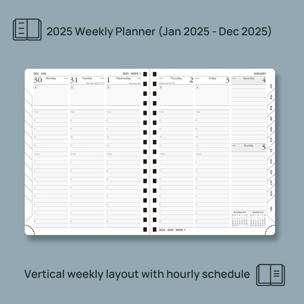 POPRUN 2025 Planner 6.5" x 8.5" with Hourly Schedule & Vertical Weekly Layout - 2025 Weekly Planner for Time Management, Monthly Tabs, Pen Holder, Spiral Bound,Leather Soft Cover - Brown 2 PAGES PER WEEK:Lay flat week-to-view on 2 pages, this weekly planner (Jan 2025 - Dec 2025) presents spacious everyday planning with hourly schedules for your appointments, which makes your busy daily routines organized. VERTICAL HOURLY LAYOUT: The weekly layout includes ample space to write (from 7:00am to 8:00pm). A week is laid to view on 2 pages. Each monthly layout contains an overview of the month and a notes section. QUICK SEARCH FUNCTION: Flexible " TODAY " Ruler and Monthly tabs allow you to quickly browse and locate the current date. Besides; The Tear-Off Corners and Bookmark Ribbons are added to mark any wanted page of your choice. EXTRA FUNCTION PAGES: This 2025 weekly planner also contains "2025-2026 Yearly Overview" Page + "2025-2026 Holiday & Calendar" Page + Monthly Expenses Page+ Contact & Password Pages + 7 Dotted Notes Pages for jotting down your ideas, thoughts or any other happy things in detail. FSC THICK PAPER: The use of ecological 100GSM paper from sustainable forests makes it silky smooth to write on and ink resistant, bringing you the ultimate writing experience. 2 PAGES PER WEEK:Lay flat week-to-view on 2 pages, this weekly planner (Jan 2025 - Dec 2025) presents spacious everyday planning with hourly schedules for your appointments, which makes your busy daily routines organized. VERTICAL HOURLY LAYOUT: The weekly layout includes ample space to write (from 7:00am to 8:00pm). A week is laid to view on 2 pages. Each monthly layout contains an overview of the month and a notes section. QUICK SEARCH FUNCTION: Flexible " TODAY " Ruler and Monthly tabs allow you to quickly browse and locate the current date. Besides; The Tear-Off Corners and Bookmark Ribbons are added to mark any wanted page of your choice. EXTRA FUNCTION PAGES: This 2025 weekly planner also contains "2025-2026 Yearly Overview" Page + "2025-2026 Holiday & Calendar" Page + Monthly Expenses Page+ Contact & Password Pages + 7 Dotted Notes Pages for jotting down your ideas, thoughts or any other happy things in detail. FSC THICK PAPER: The use of ecological 100GSM paper from sustainable forests makes it silky smooth to write on and ink resistant, bringing you the ultimate writing experience. Shipping from the USA All of our products are shipped from the USA, ensuring quick delivery to your destination. Payment We offer the following payment methods: PayPal, credit card, bank transfer, and eBay's secure payment system. Free Shipping & Free Returns Shipping within the USA is FREE. Additionally, any return is absolutely free for you. Risk-Free Purchase You have the option to return an item within 30 days without any justification. We cover the return shipping costs! Fast Shipping We ship immediately upon receipt of payment. Generally, the package is delivered within 2-3 days in the USA. If it takes longer, we will contact you. Quality and Costs Made in Europe, USA, China No customs fees or additional charges Total satisfaction guarantee Invoice with declared VAT available upon request in .pdf format Feedback Your feedback is very important to us. After you pay for your purchase, you will automatically receive positive feedback from us.