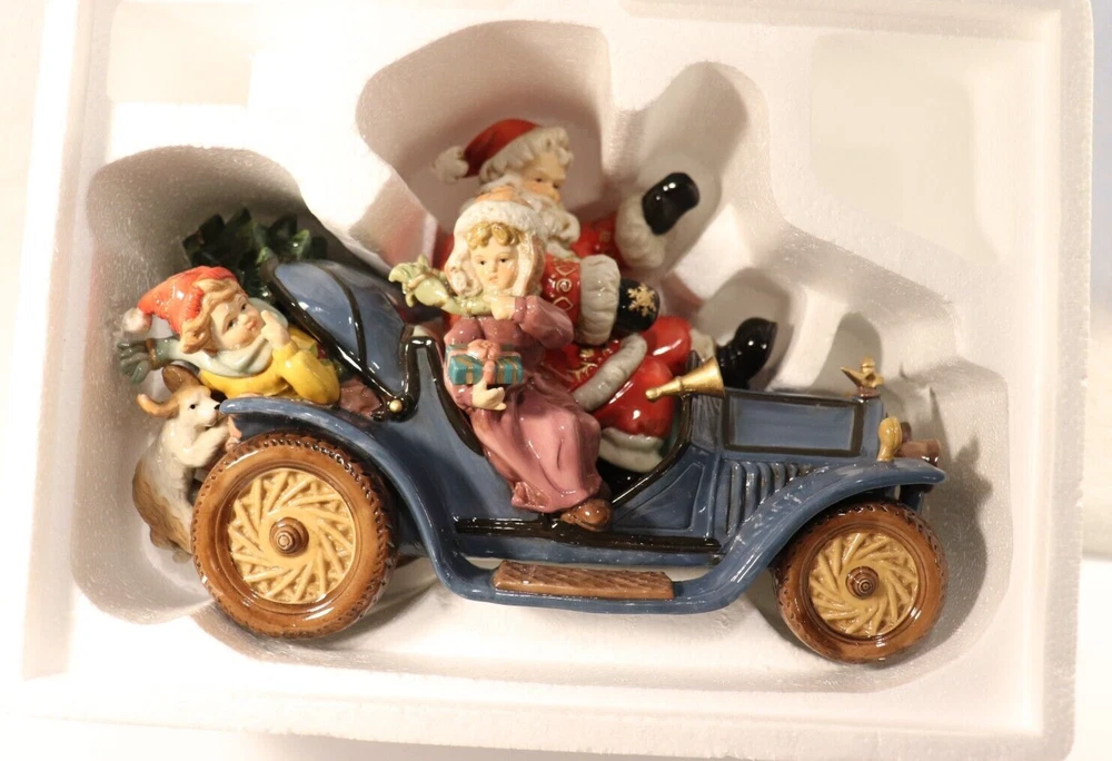 Up for Sale is Santa On Wheels in a Blue Car, making his rounds on wheels. (See Pictures) Collector`s Edition by "GRANDEUR NOEL"---2003. Beautifully done in an array of glossy colors done on Porcelain. (See Pictures) Measures almost 12 inches in length. (See Picture #10) Will be coming to you in New Other Condition--missing plastic bag. With the Original styro-foam packing with the Original Box. (See Pictures) There are 10 Close-Up pictures for you to get a good look at what you are bidding on. E-BAY, FOR IMMEDIATE SHIPMENT. WE SHIP INSURED PRIORITY, FIRST CLASS, AND MEDIA USPS MAIL WITH DELIVERY CONFIRMATION RECEIPT. WE SHIP FIRST CLASS INTERNATIONAL MAIL USPS with NO INSURANCE. WE SHIP PRIORITY MAIL INTERNATIONAL WITH INSURANCE and GLOBAL USPS ONLY! The postage for this item is $12.80 in the continental U.S.A. Other than U.S.A., e-mail for shipping rates. MINNESOTA RESIDENTS ADD 7.525% SALES TAX There is a 30 day return policy for a full refund, excluding Postage. If you are not satisfied with your purchase, please notify by e-mail that you will be returning an item. GOOD LUCK BIDDING!!!!! AS ALWAYS YOUR SATISFACTION IS A MUST!!!!!!!!!!!!!!