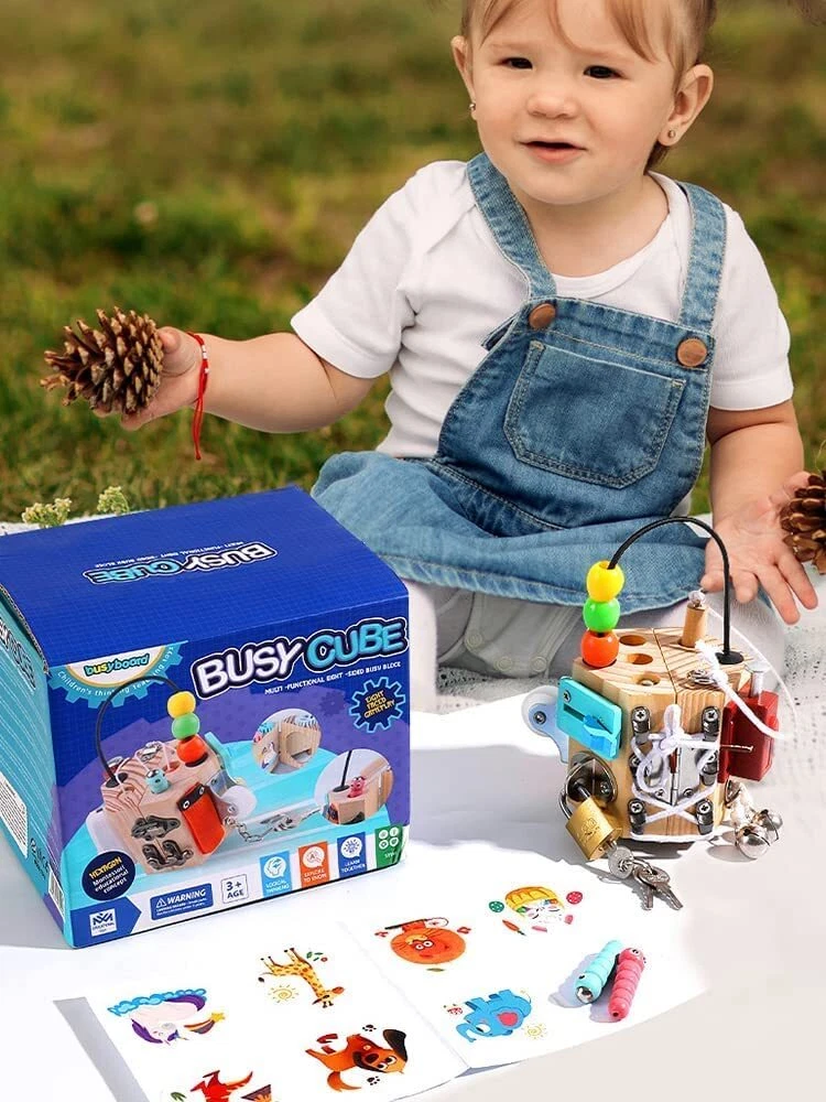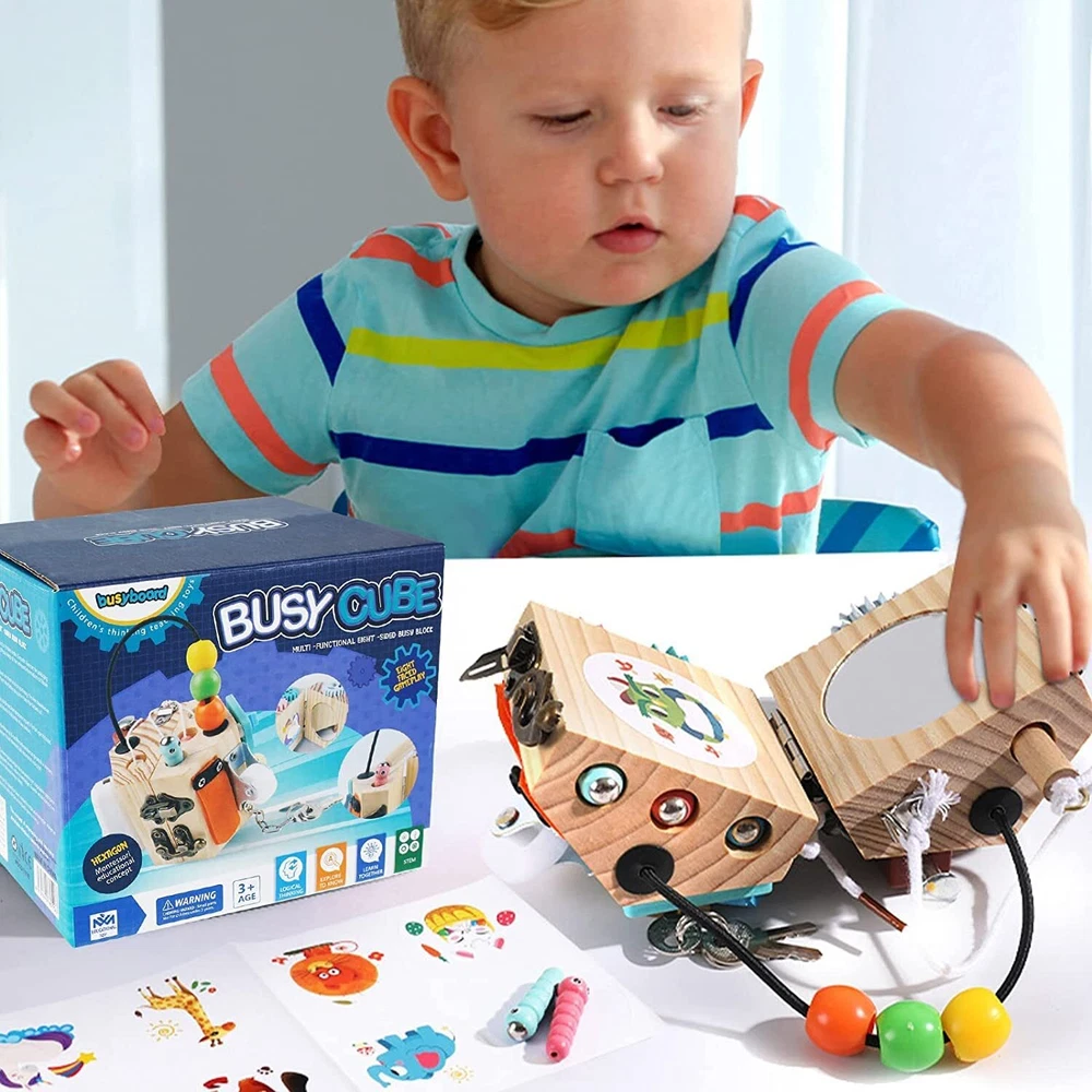 PORLPOEK Busy Cube for Kids Sensory Busy Board Travel Toy 14 in 1 for Toddlers ,Handmade Activity Cube Autism Sensory Toys for Educational Learning,Fidget Board Montessori Toys for Babies Gift busy cube 14 in 1 Activity Cube: Combines 14 different basic life skills activities for learning and playing, lock with key, gear, switch, velcro, buttons,mirror,sticker,shoelace,bell etc,Keep your children busy and entertained for hours, while develop their fine motor skills, encourage scientific thinking and problem solving. Learning Made Fun: Safe preschool learning activities for quiet play and develop fine motor skills, dressing skills, finger dexterity, and cognitive skill. And these fun activities designed according to real life can teach kids some basic skills and improve hand-eye coordination,fine motor skills and critical thinking skill. Safe and handmade:This activity cube is well made solid wood,Installed firmly and more durable, The activity accessories above are manually installed,To protect small hands and enrich the experience, The busy cube for baby surfaces with smooth edges without burrs. Perfect Travel Toys: The sensory toy is small size but with many active sections,its lightweight and not take too much space. However, there are 14 different activity sections available, Perfect Montessori toy to keeps kids busy while on car, airplane, travel or settings needing quiet and entertained without screens. Develops Basic Life Skills:Children can learn everyday skills from this busy cube such as using switches, unlocking with keys, tying shoelaces, gears and more. Develops children's cognitive, attention and learning skills. Shipping from the USA All of our products are shipped from the USA, ensuring quick delivery to your destination. Payment We offer the following payment methods: PayPal, credit card, bank transfer, and eBay's secure payment system. Free Shipping & Free Returns Shipping within the USA is FREE. Additionally, any return is absolutely free for you. Risk-Free Purchase You have the option to return an item within 30 days without any justification. We cover the return shipping costs! Fast Shipping We ship immediately upon receipt of payment. Generally, the package is delivered within 2-3 days in the USA. If it takes longer, we will contact you. Quality and Costs Made in Europe, USA, China No customs fees or additional charges Total satisfaction guarantee Invoice with declared VAT available upon request in .pdf format Feedback Your feedback is very important to us. After you pay for your purchase, you will automatically receive positive feedback from us.